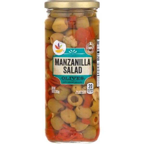 slide 1 of 1, Manzanilla Salad Olives with Minced Pimiento, 10 oz