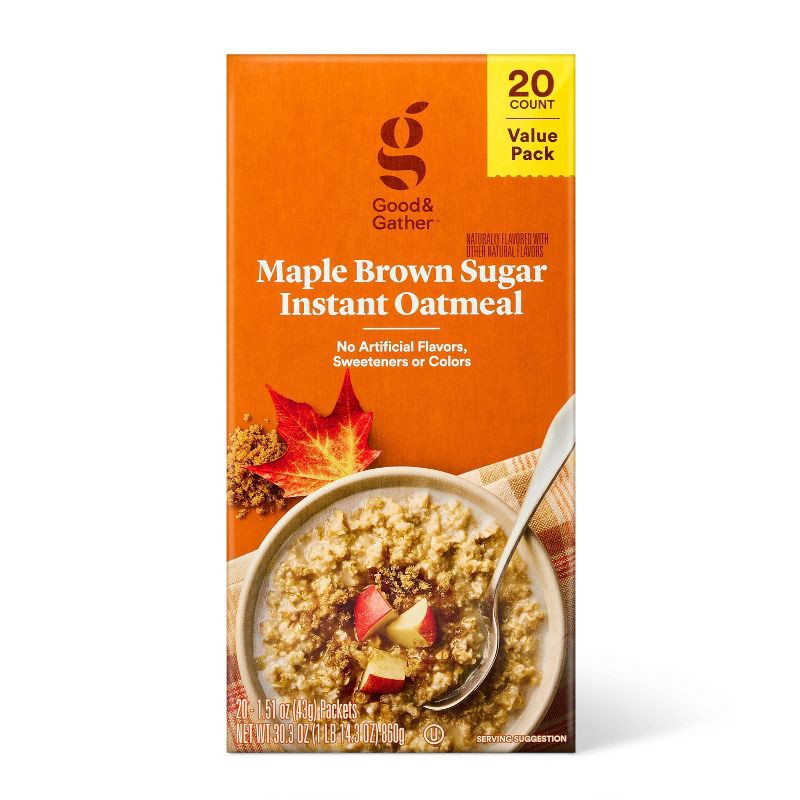 - Good & Gather maple and brown sugar naturally flavored with other natural flavors instant oatmeal