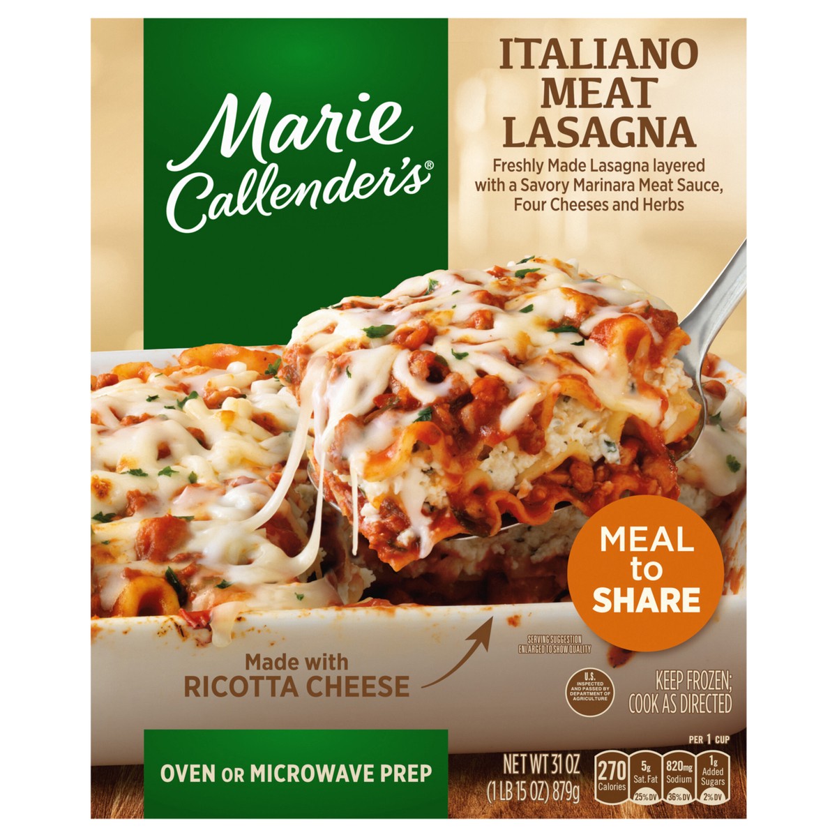 Marie Callender's Marie Callender’s Italiano Lasagna With Ricotta Cheese Meal to Share, Frozen Meal, 31 oz.