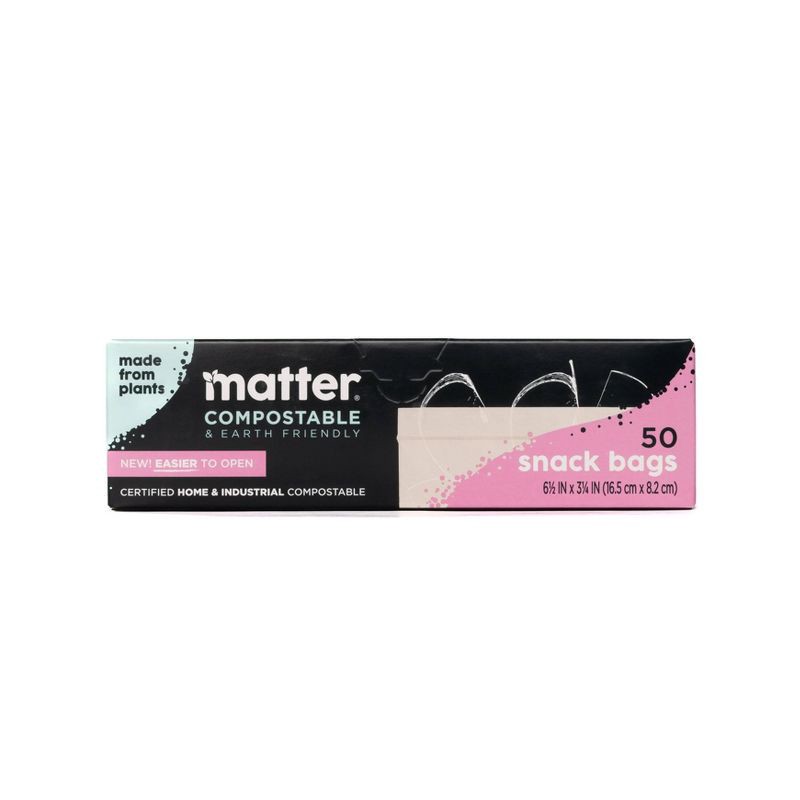 - Matter brand Snack Bags are home and commercially compostable (Facilities may not exist in your area)