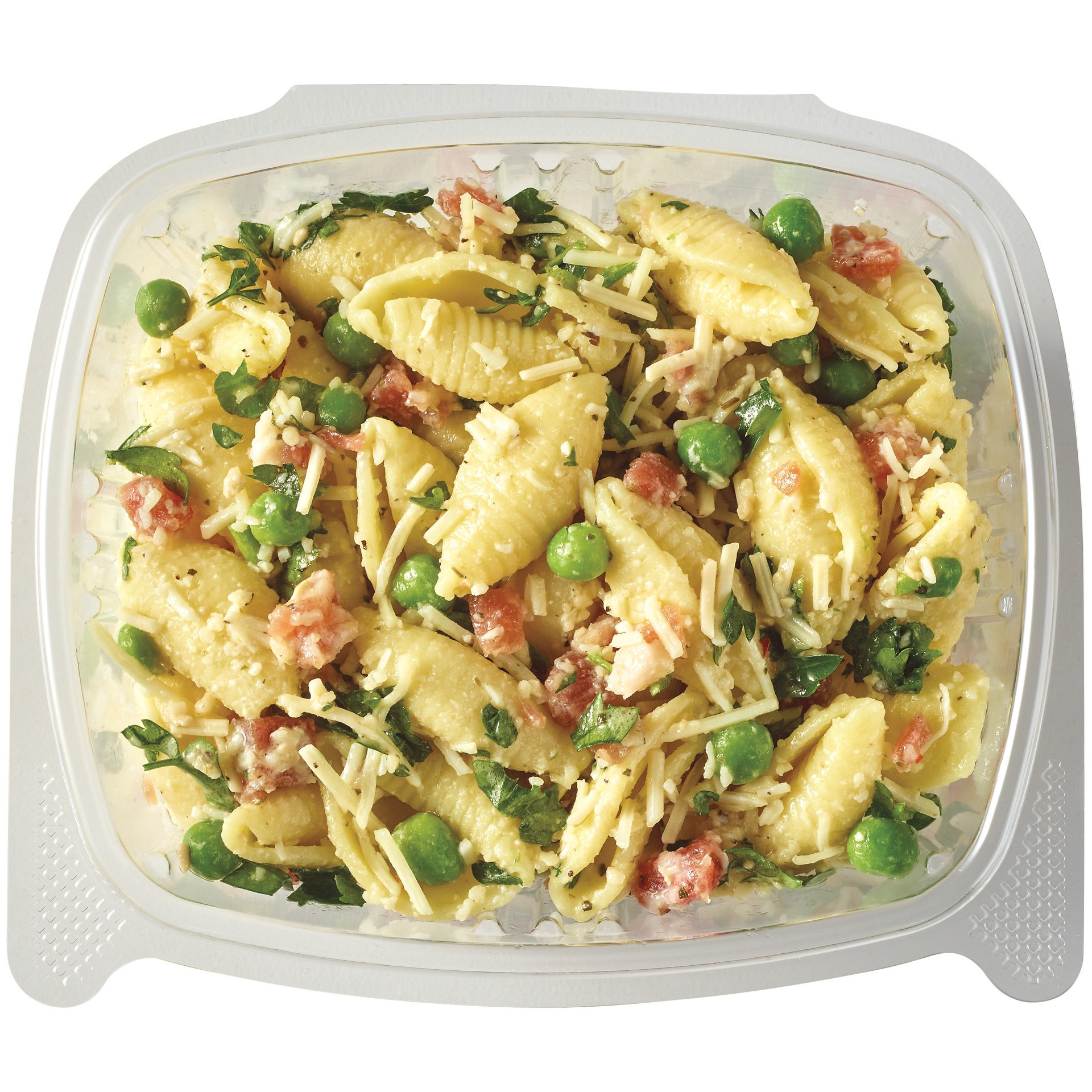 pea & proscuitto pasta (cooked shell pasta (water, enriched medium shells pasta (durum wheat semolina, niacin, iron (ferrous sulfate), thiamine mononitrate, riboflavin, folic acid), canola oil, extra …