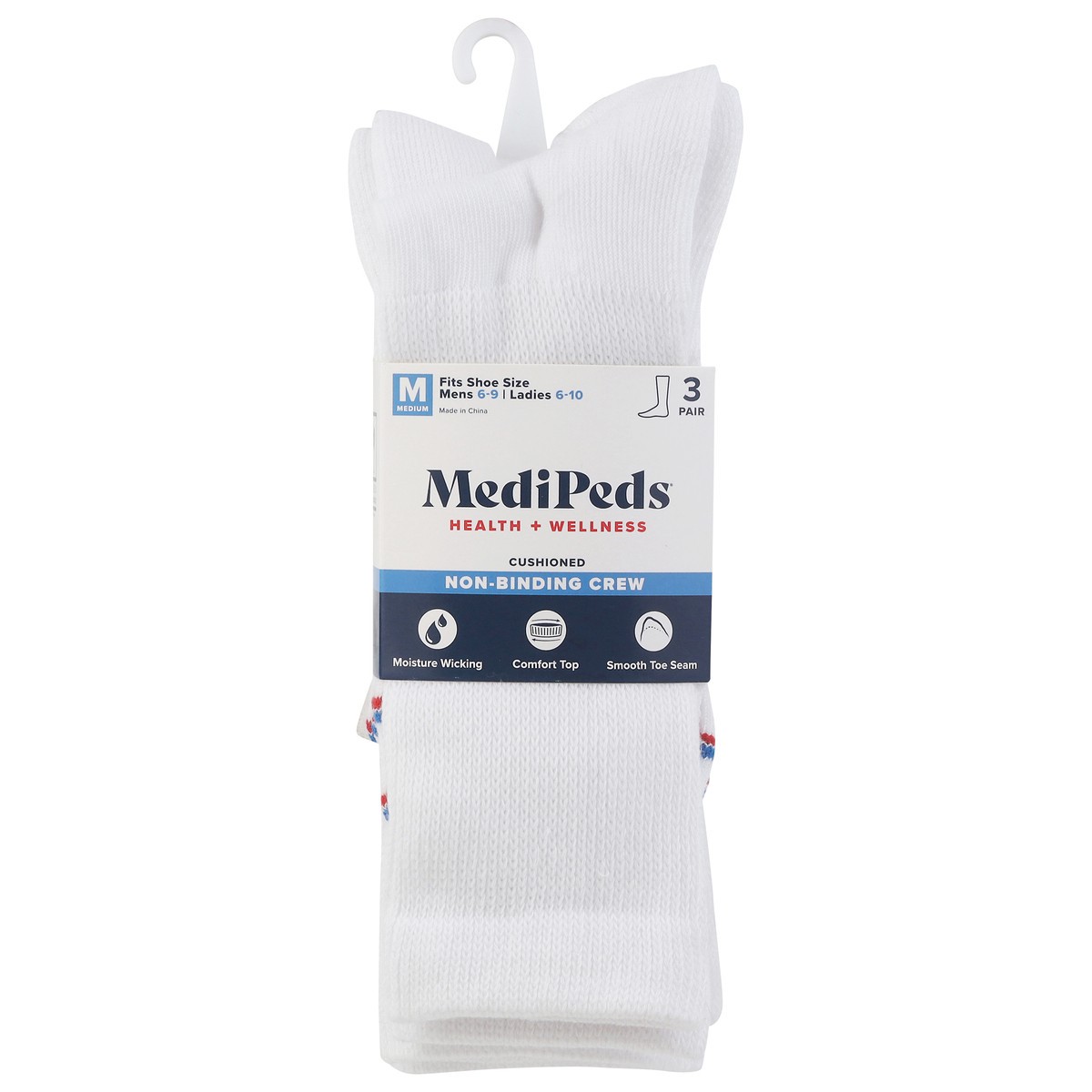 MediPeds Unisex White Cushioned Non-Binding Crew Socks Medium 3 ea