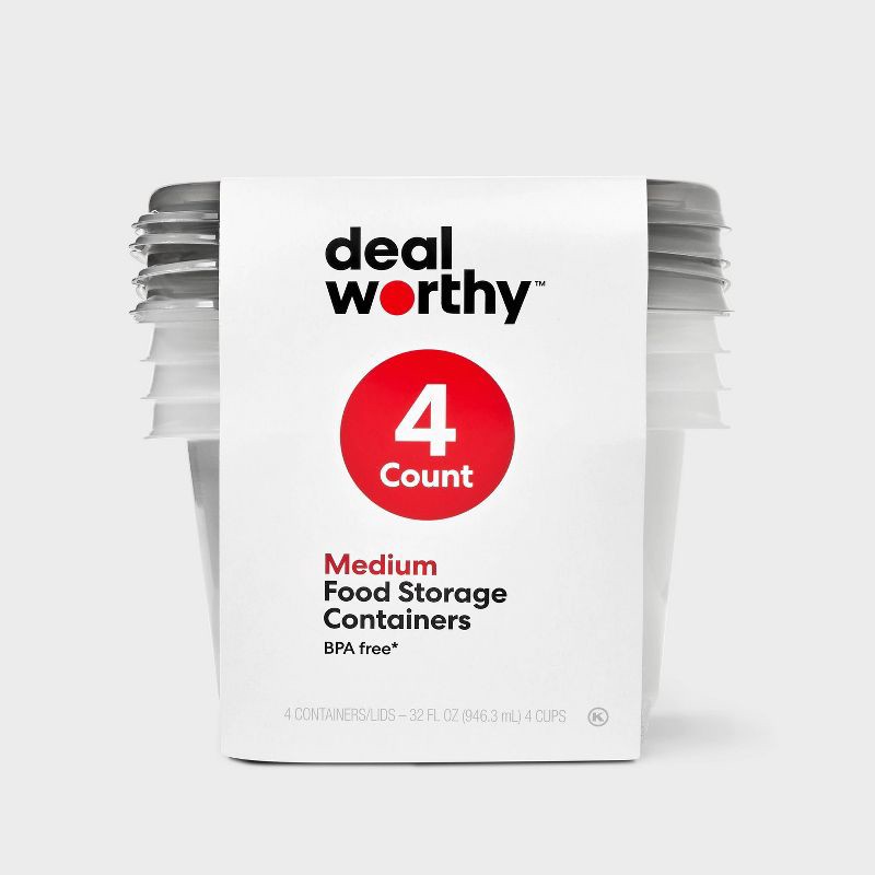 Medium Square Food Storage Containers - 32 fl oz/4ct - Dealworthy™