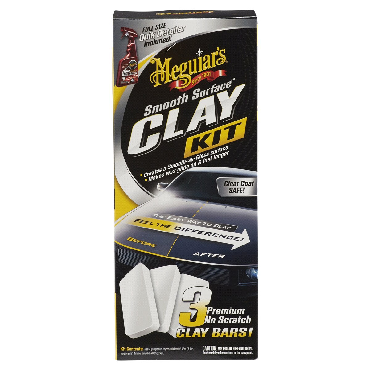 Kit Contents: Three 60 gram premium clay bars, Quik Detailer 473 ml (16 fl oz), supreme shine microfiber towel 40 cm x 60 cm (16 inch x 24 Inch). 3 premium no scratch clay bars! Smooth surface. Full s…