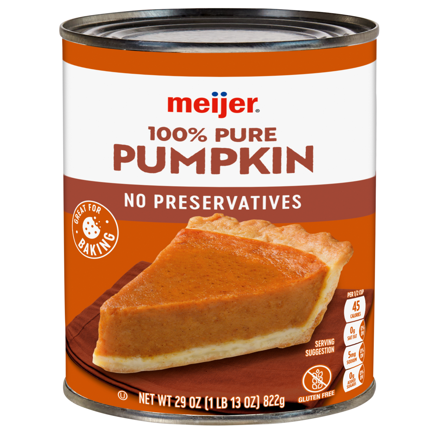 Meijer Pumpkin is made from varieties of well-ripened pumpkins. That's it, just pumpkin! Great for pies and an excellent source of Vitamin A.