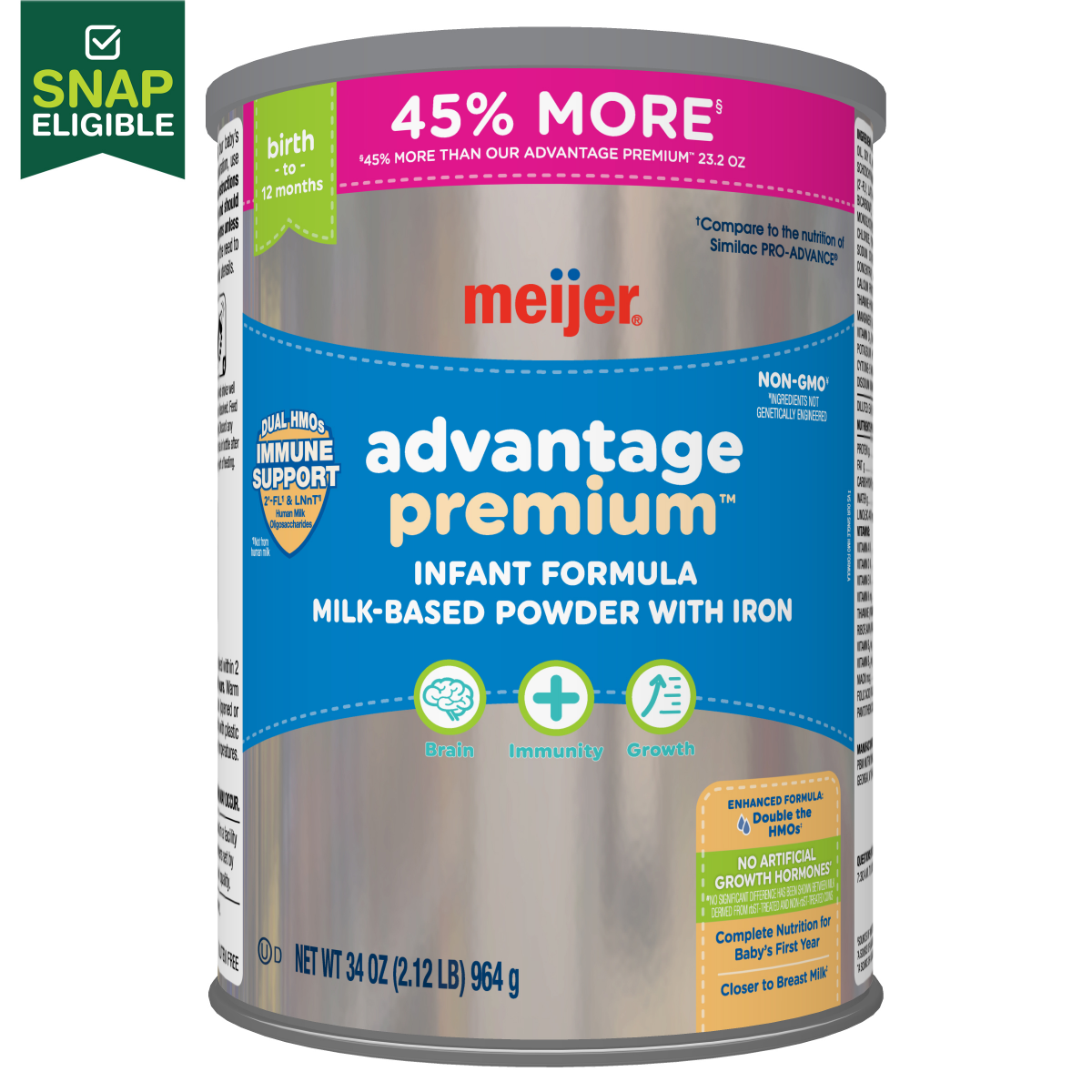 Compare to Similac PROADVANCE Infant Formula. Meijer Advantage Baby Formula Powder With Iron, is specially crafted to provide complete nutrition for your little one ages 012 months. With prebiotic 2FL…