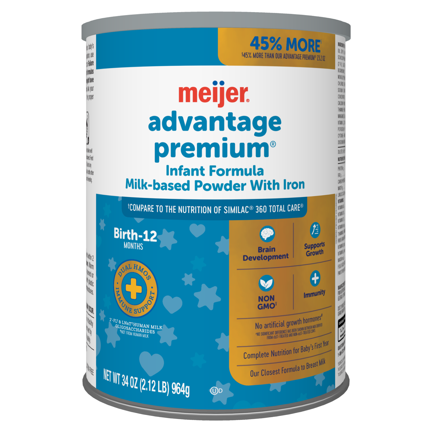 Compare to Similac PROADVANCE Infant Formula. Meijer Advantage Baby Formula Powder With Iron, is specially crafted to provide complete nutrition for your little one ages 012 months. With prebiotic 2FL…