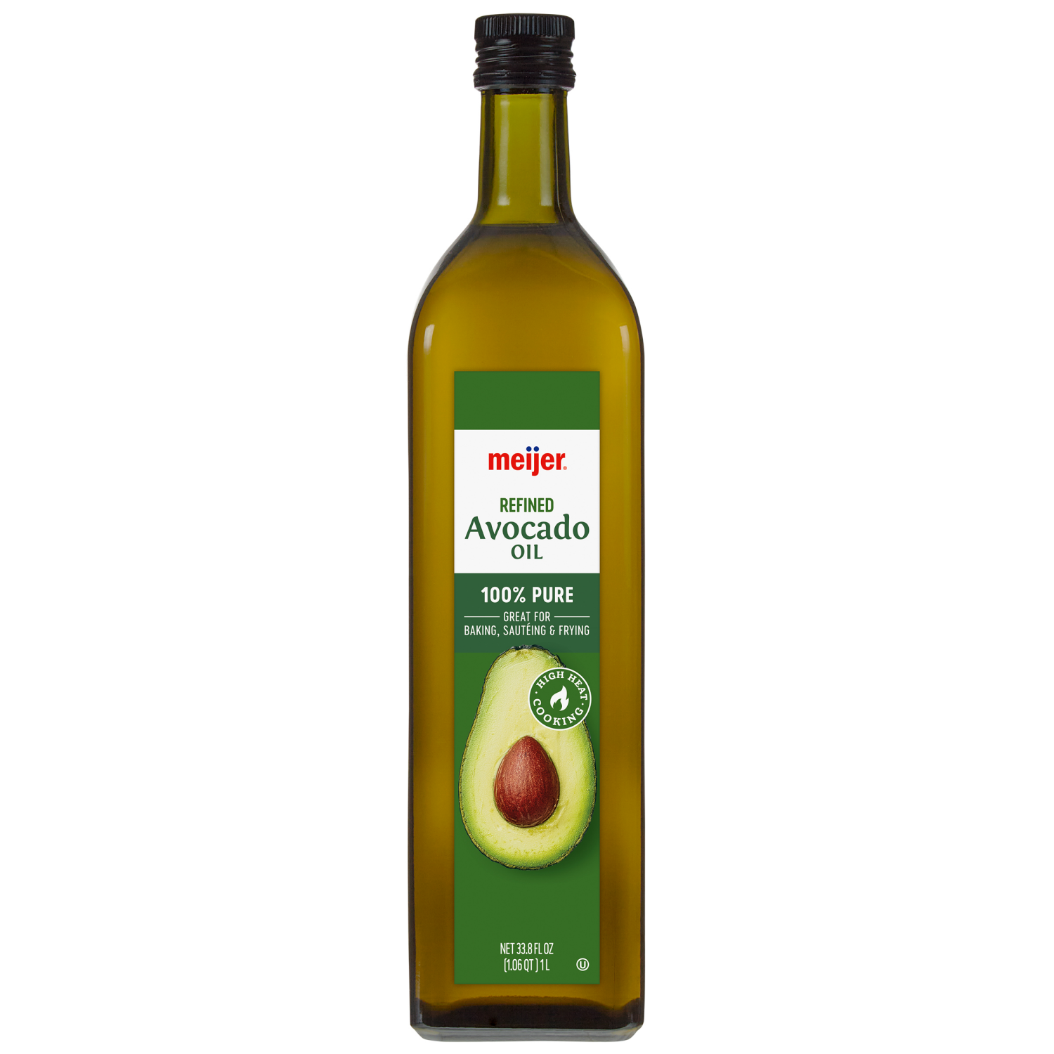 Meijer 100% Pure Refined Avocado Oil is great for high-heat cooking, and its neutral flavor makes it great for baking, sauteing, and frying.
