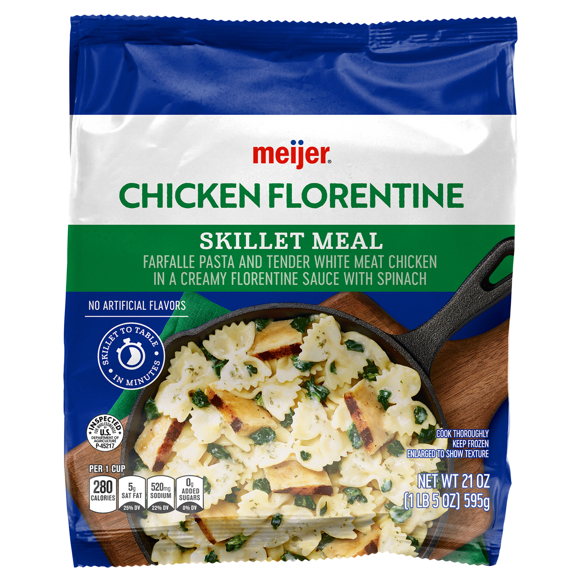 Perfect for busy days or as a quick family dinner, Meijer Chicken Florentine Skillet Meal is packed with the savory flavors you know and love. A flavorful blend of tender white meat chicken and farfal…