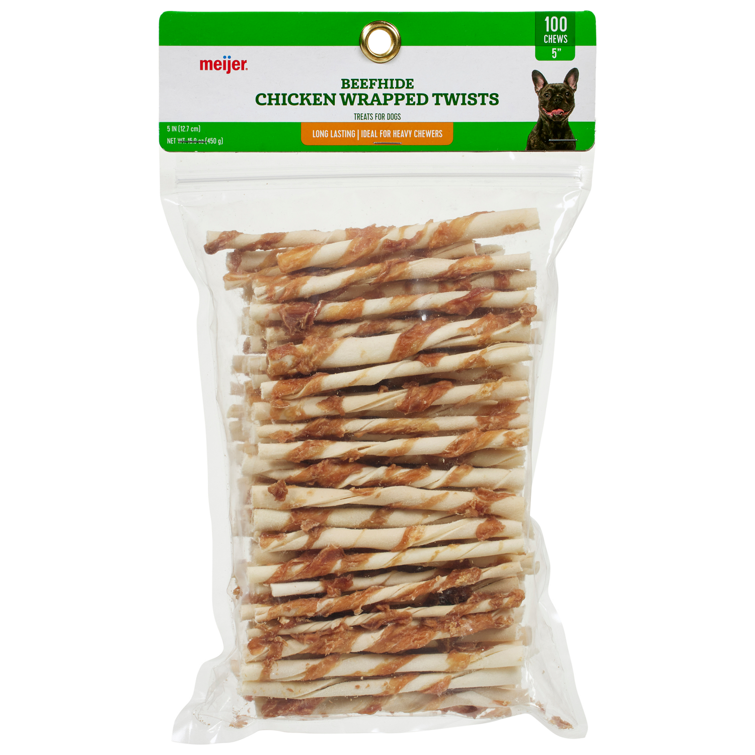 Good dogs deserve even better treats. Reward your furry friend with a deliciously savory Meijer Chicken Wrapped Beefhide Twist Sticks. Perfect for small and medium dogs under 50 pounds, your loyal com…