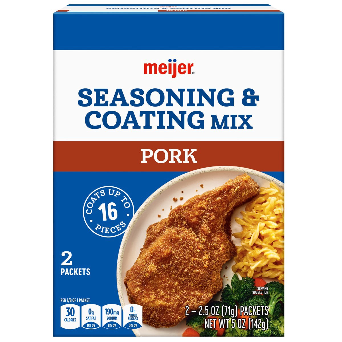 Adding a satisfying crunch to your pork has never been so easy. A perfect balanced blend of paprika, garlic, onion, natural smoke flavor and spices, Meijer Pork Seasoning Coating Mix will add a perfec…