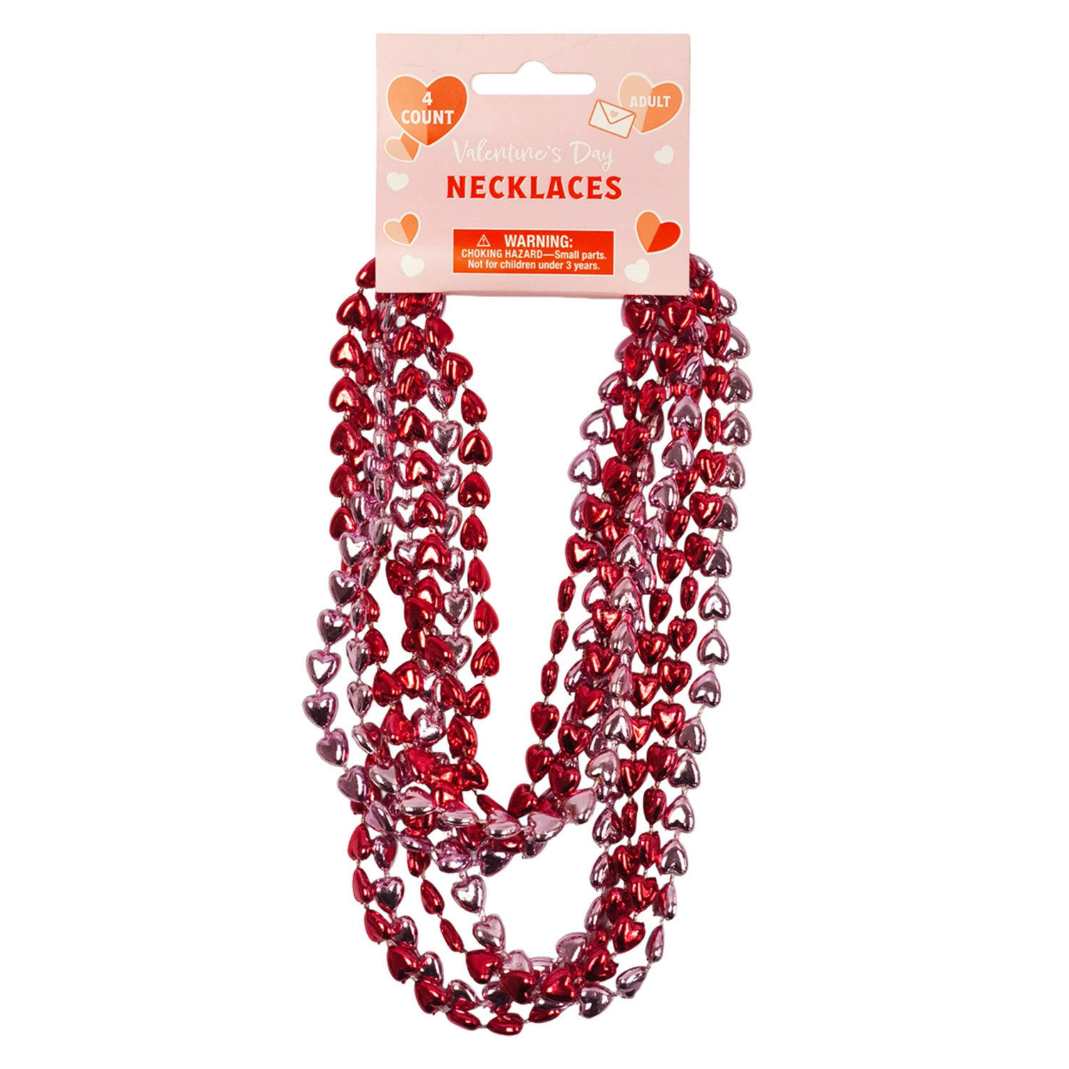 4 pcs Valentine necklaces with heart shape beads, in lovely metallic pink and red colors