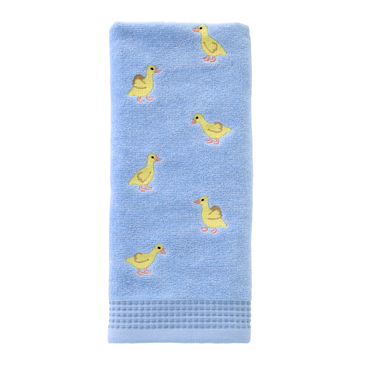 Bring a cheerful vibe to your home with this cute hand towel. Made of soft cotton velour, it features embroidery of scattered little ducks and dobby trim along the hem. It can be used in the bathroom,…