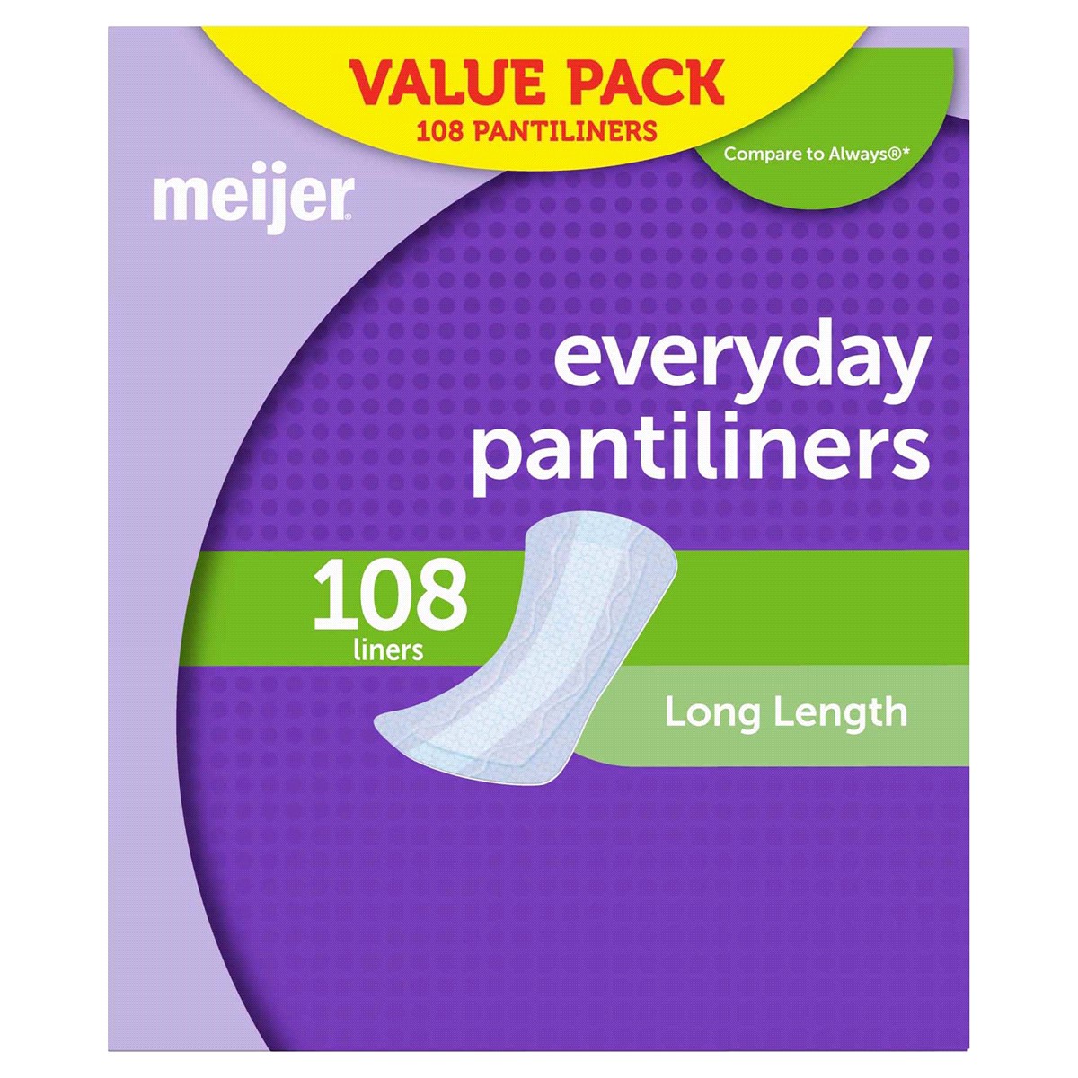 Meijer Everyday Long, Unscented Pantiliners are perfect for everyday protection against wetness and leaks. Now with the Dri-Fit cotton enhanced System, from spotting to slight urine loss to tampon bac…