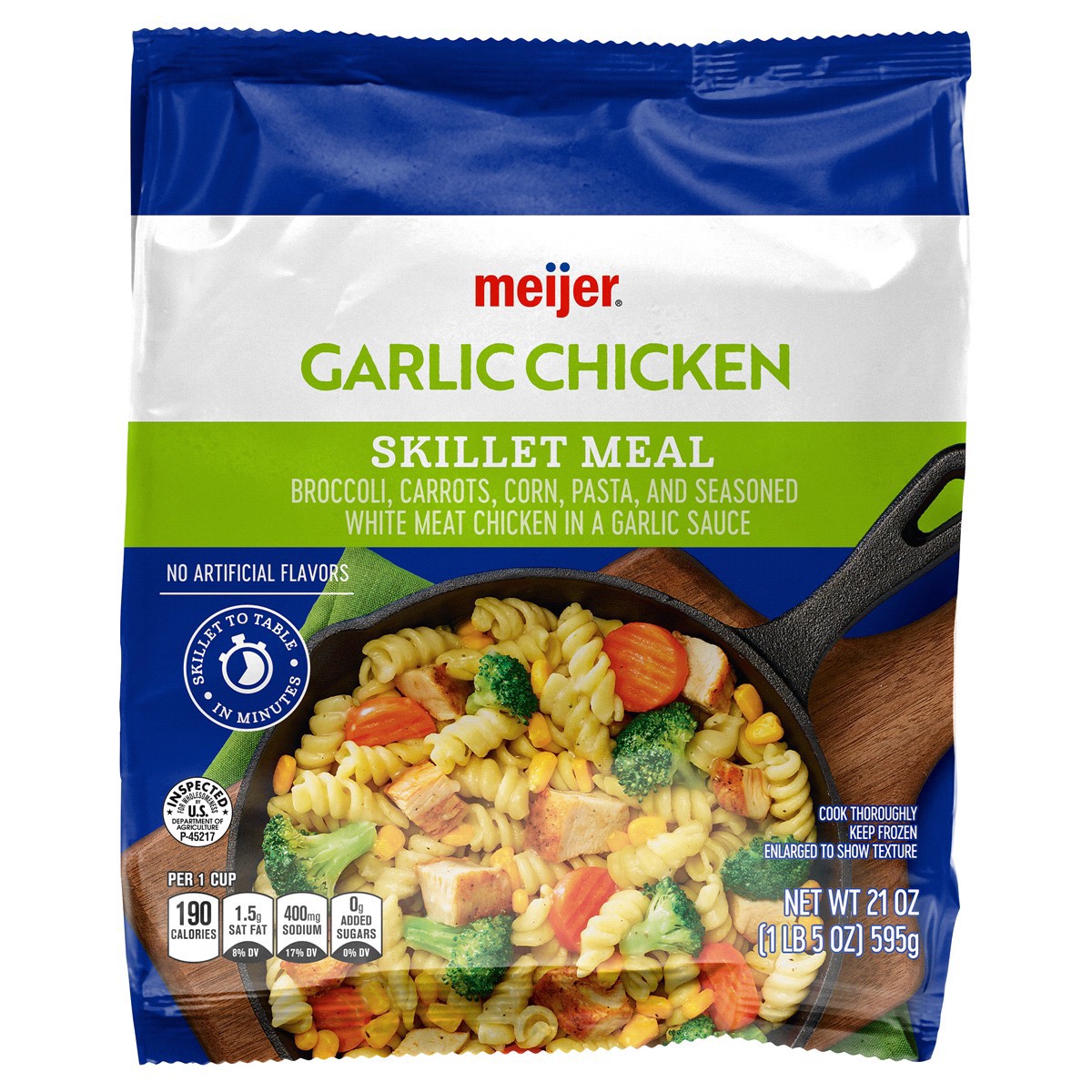 Perfect for busy days or as a quick family dinner, Meijer Garlic Chicken Skillet Meal is packed with the savory flavors you know and love. A flavorful mix of seasoned white meat chicken and rotini pas…