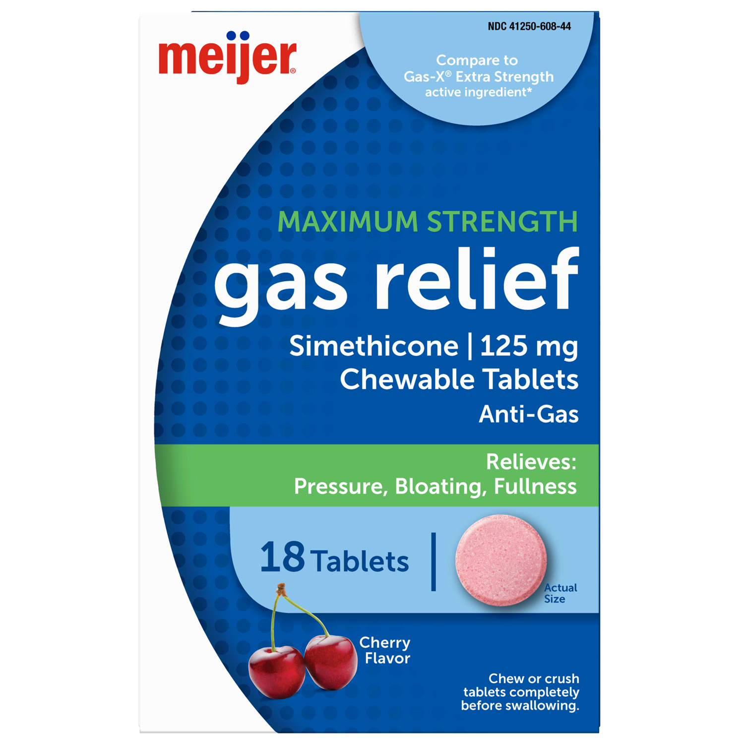 slide 4 of 4, Meijer Gas Relief Ext Str Cherry Chewable Tablets, 18 ct