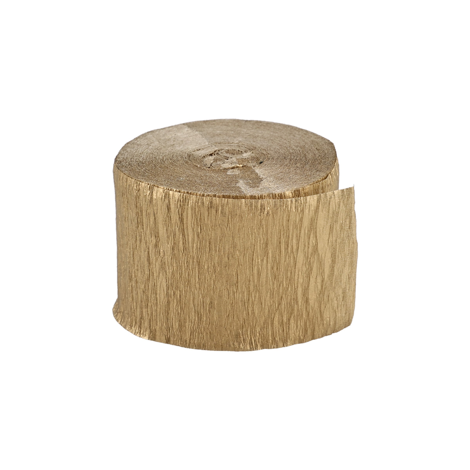 Add a playful touch to your celebration with this gold crepe streamer. Easy to hang, twist, and drape, it's perfect for decorating walls, tables, doorways, and more.