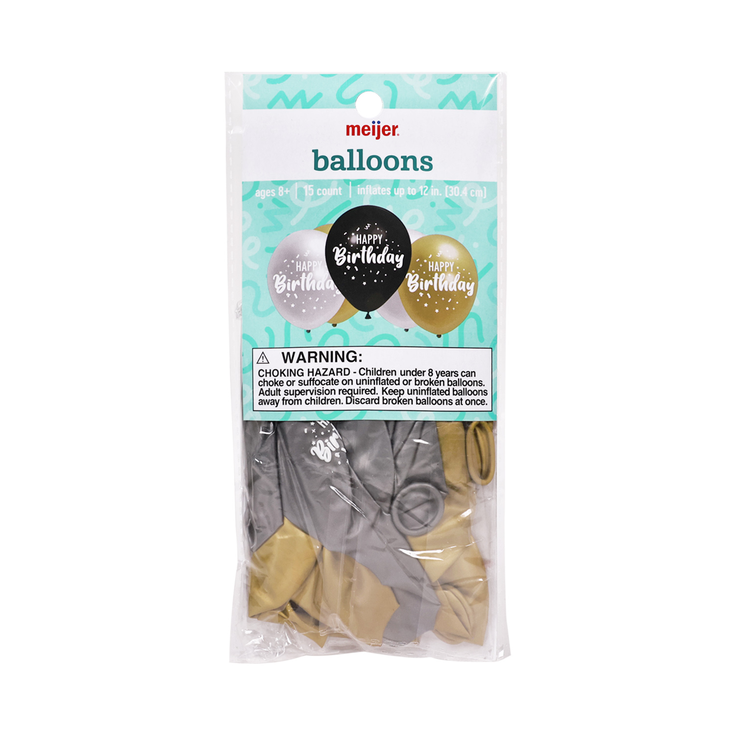 slide 1 of 1, Meijer Happy Birthday Balloons, Black, Silver, Gold, 12 In, 15 ct