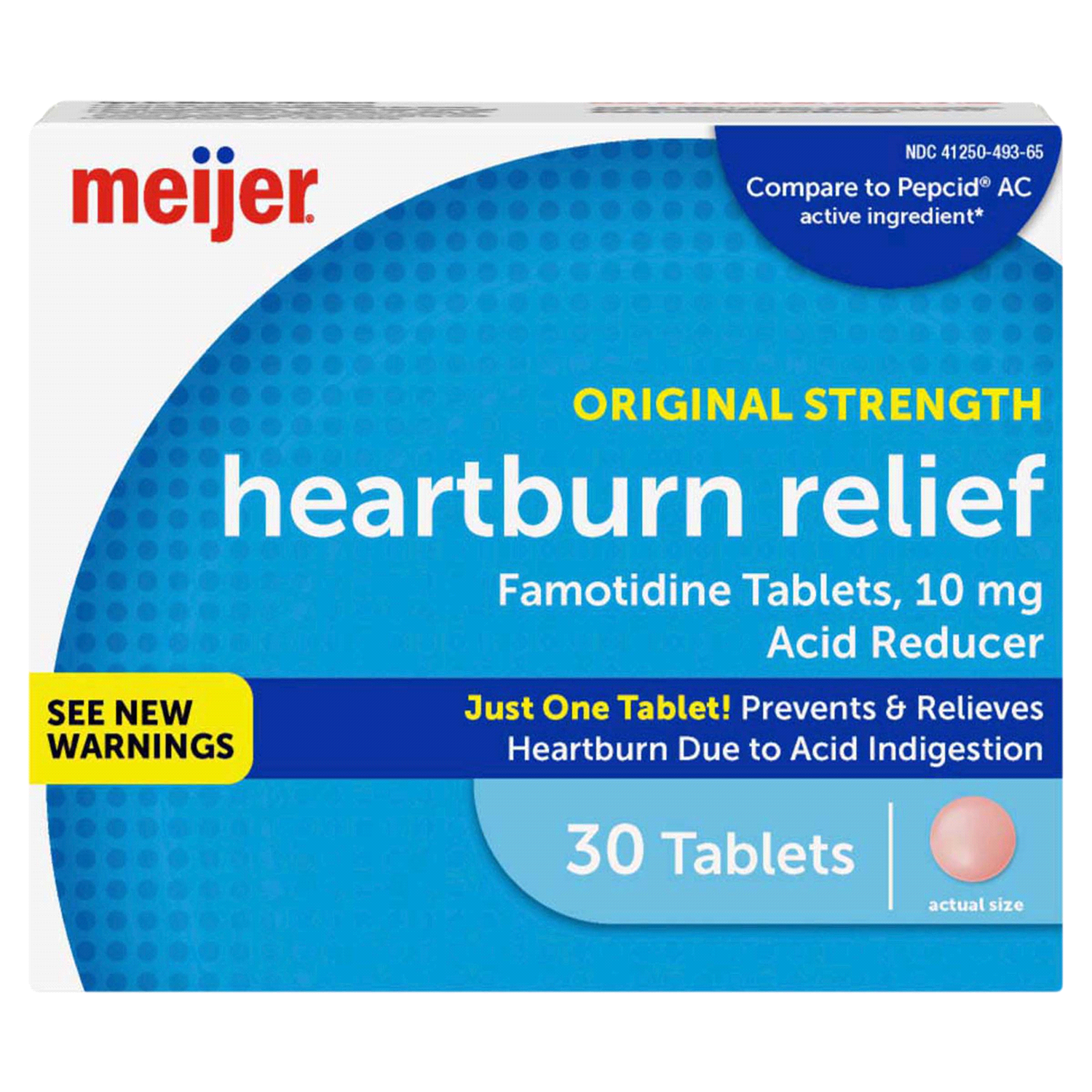 Just one Meijer Brand Famotidine Tablet, 10 mg, relieves & prevents heartburn associated with acid indigestion.