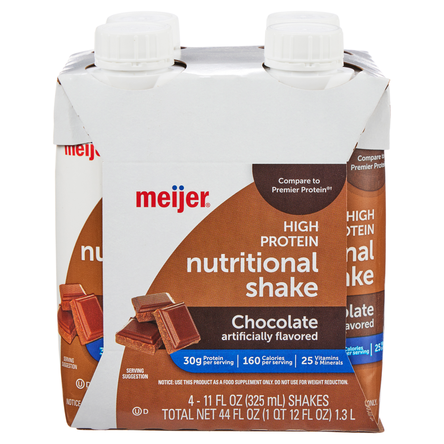 The Meijer High Performance Protein Shake in Chocolate flavor is a gluten-free nutritional supplement, packed with 30g of protein and 25 essential vitamins and minerals per serving. Comparable to Prem…