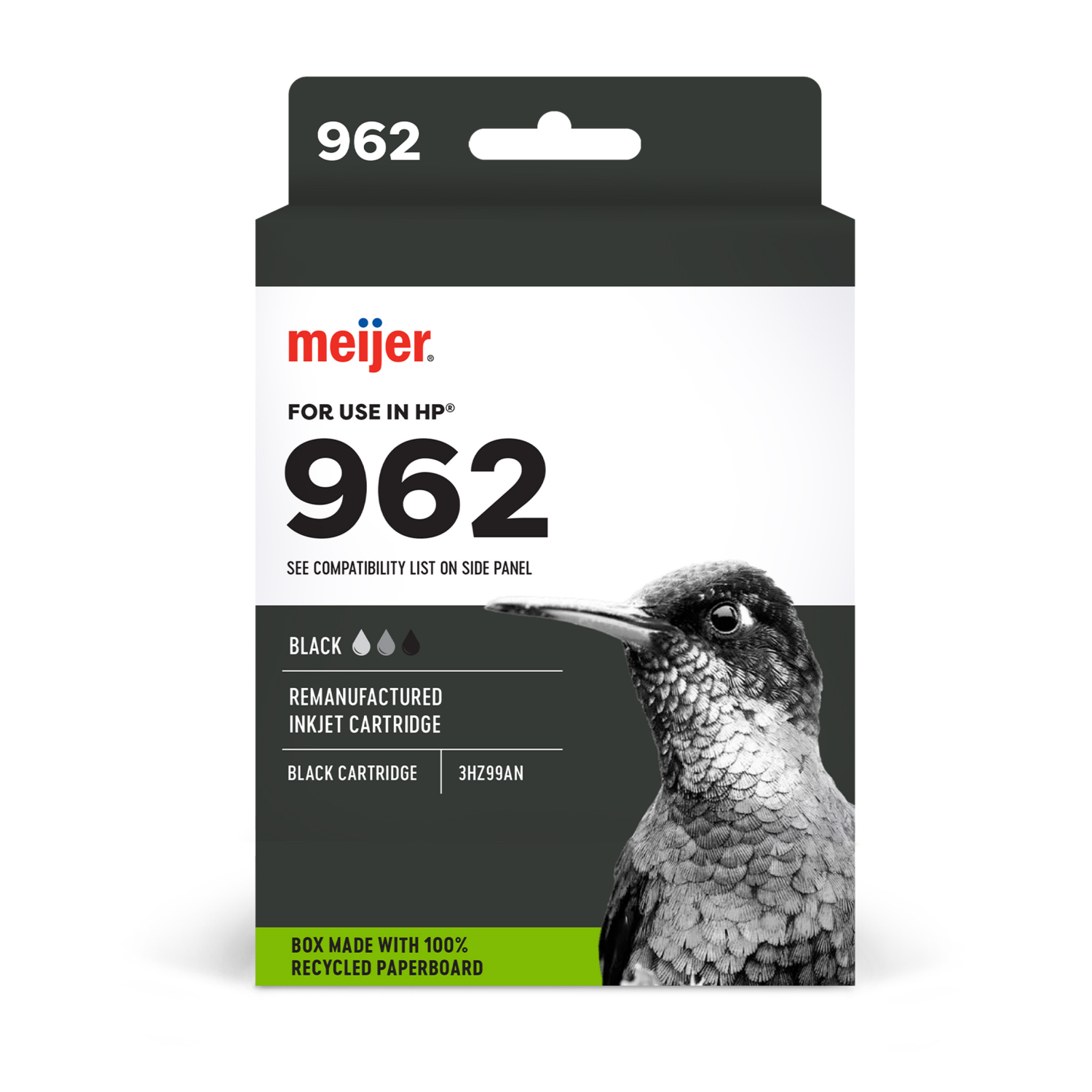 The Meijer HP Ink 962 Black 1Pk is a high-value, remanufactured inkjet cartridge, delivering crisp text and rich blacks. Compatible with numerous HP printers, it's made with at least 99% recycled cont…