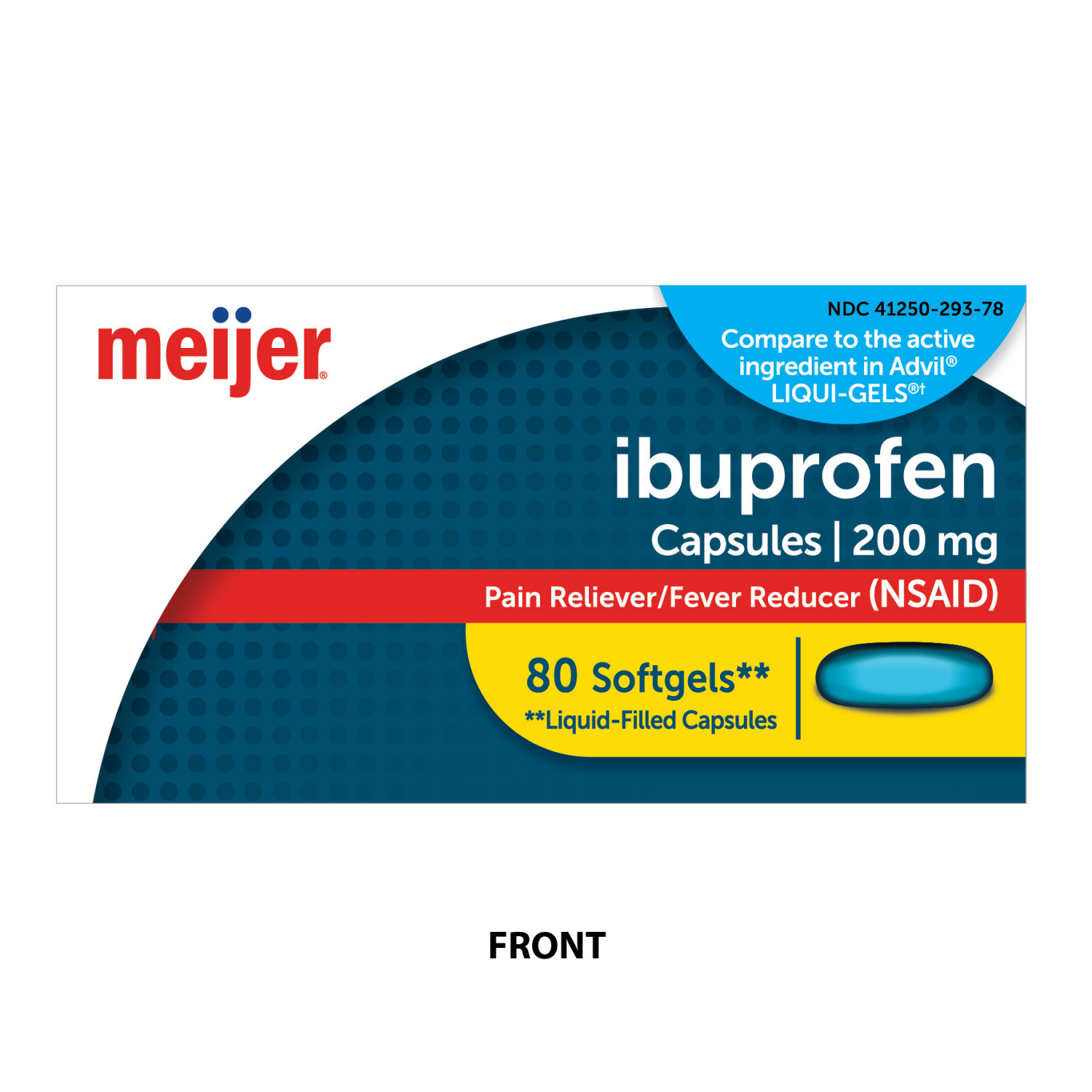 Meijer Ibuprofen Pain RelieverFever Reducer Softgels temporarily relieves minor aches and pains due to headache, muscular aches, backache, minor arthritis pain, the common cold, toothache, menstrual c…