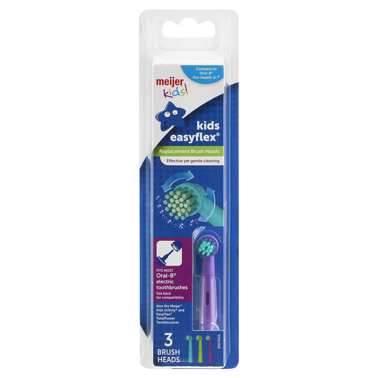 Make sure your child has good oral hygiene with Meijer Kids EasyFlex Brush Heads. They're made with extra-soft bristles that are designed to clean teeth gently and effectively. This 3-count package fe…