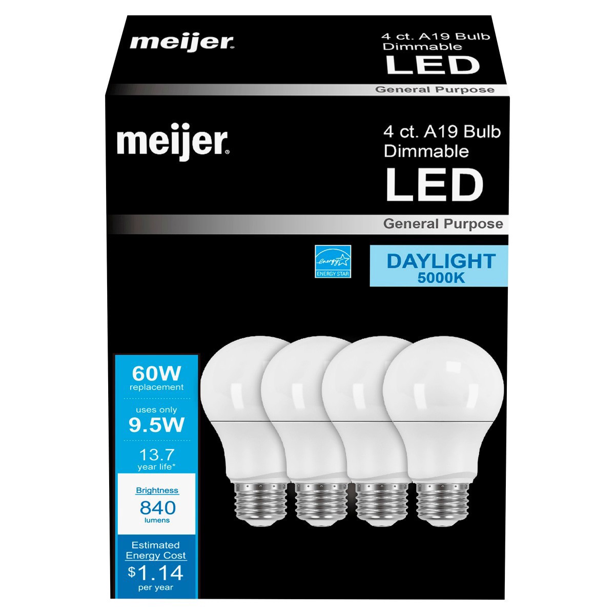 Meijer LED 9.5W A19 Dimmable Light Bulb, Daylight, 60W Equivalent