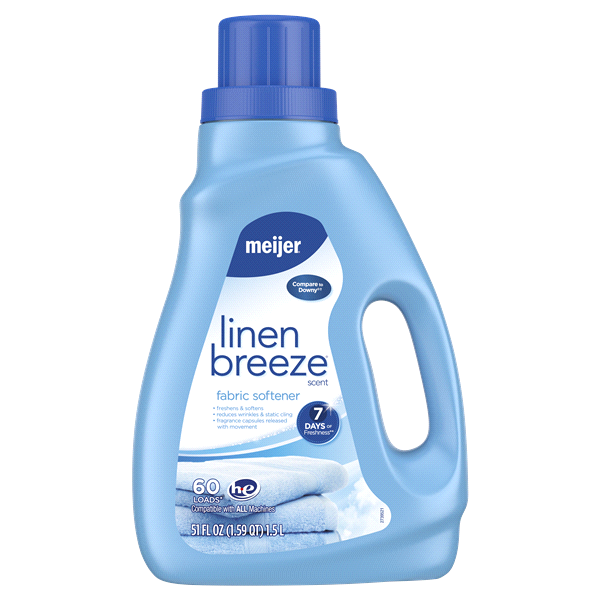Meijer Linen Breeze Fabric Softener reduces wrinkles and static cling while leaving your clothes soft. This fabric softener provides results consistent with other premium fabric softeners at an amazin…
