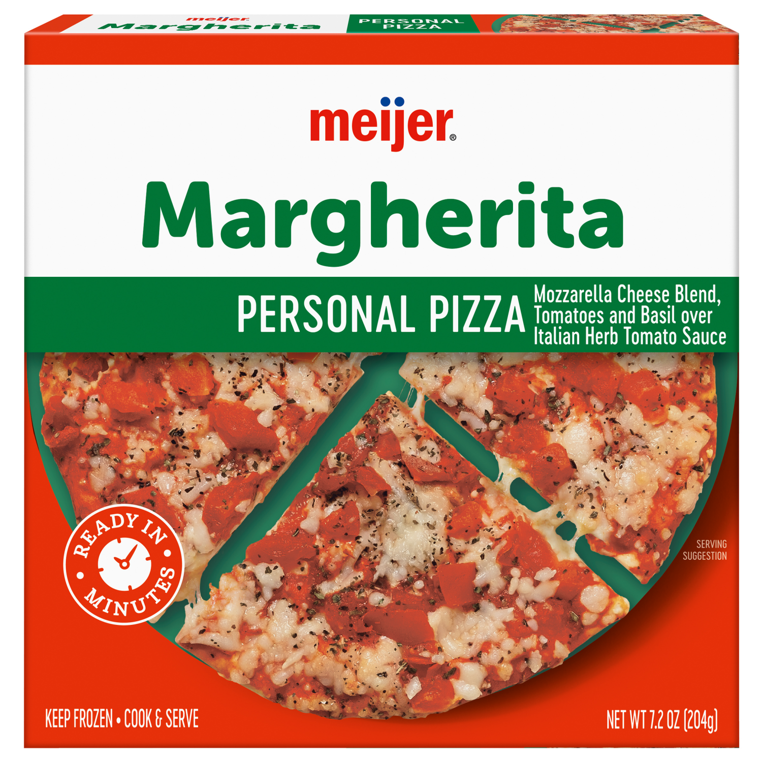 Indulge in the delicious taste of Meijer's Margherita Personal Pizza, a frozen delight that's ready in minutes. This pizza features a mozzarella cheese blend, tomatoes, basil, and an Italian herb toma…