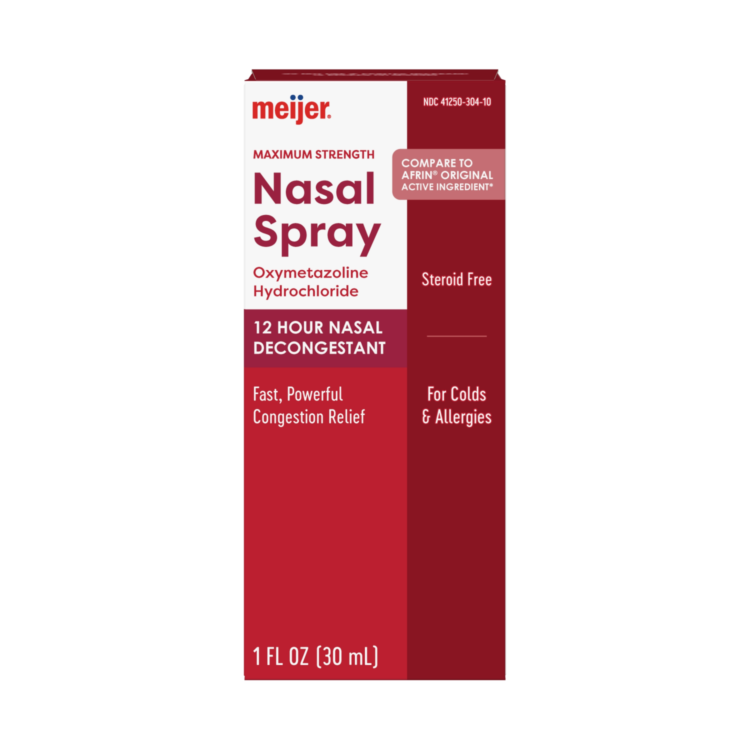 Compare to Afrin Original active ingredient. Maximum Strength Nasal Spray provides fast, powerful congestion relief for allergies and colds for up to 12 hours. The active ingredient is oxymetazoline h…