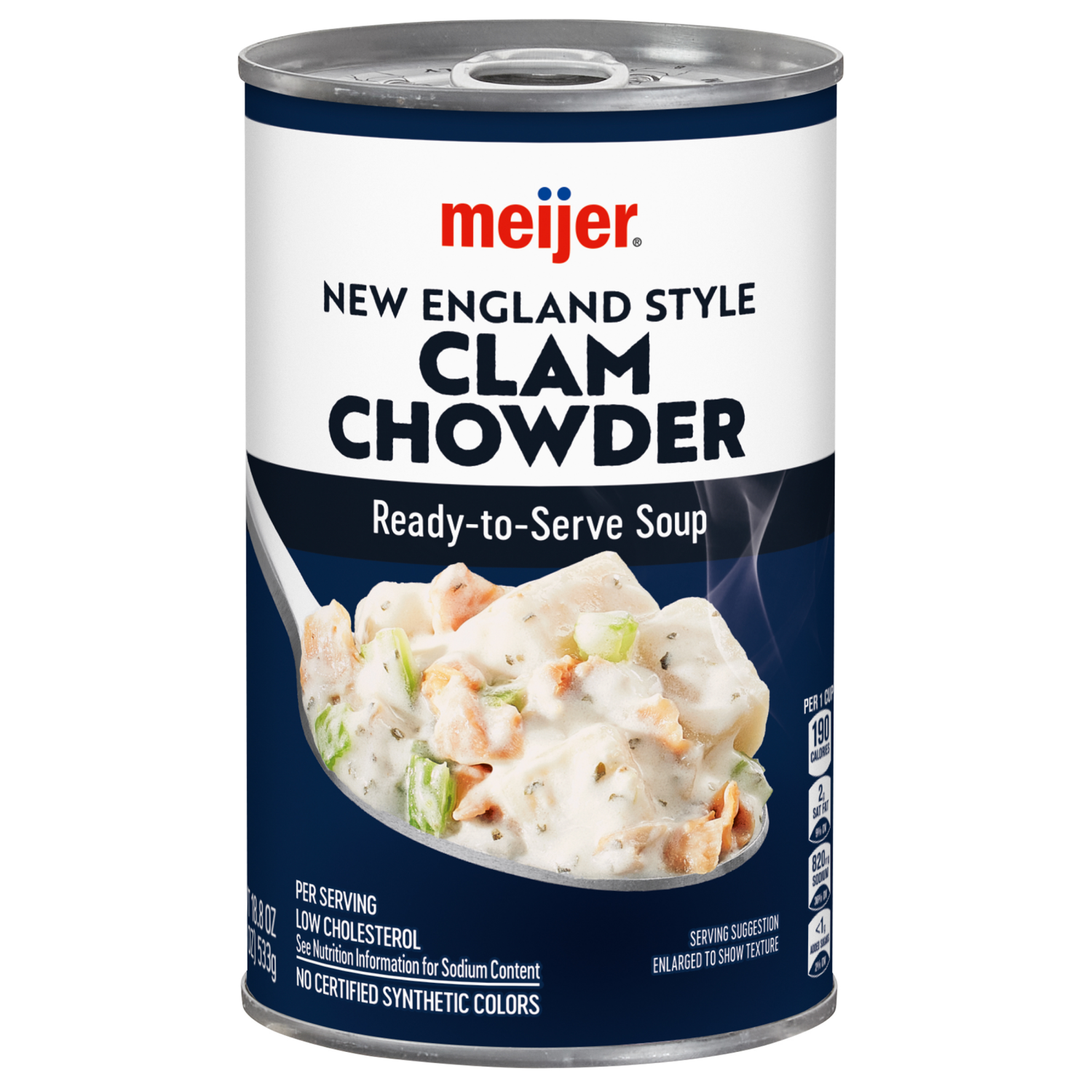 Indulge in the rich, comforting flavors of Meijer's New England Style Clam Chowder, a ready-to-serve soup packed with clam stock, potatoes, clam meat and celery. This hearty soup is perfect for a quic…