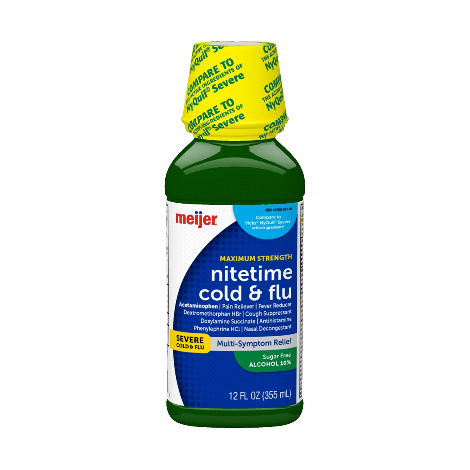 Meijer Night Time Cold & Flu pain reliever, fever reduces, nasal decongestant, cough suppressant and antihistamine.