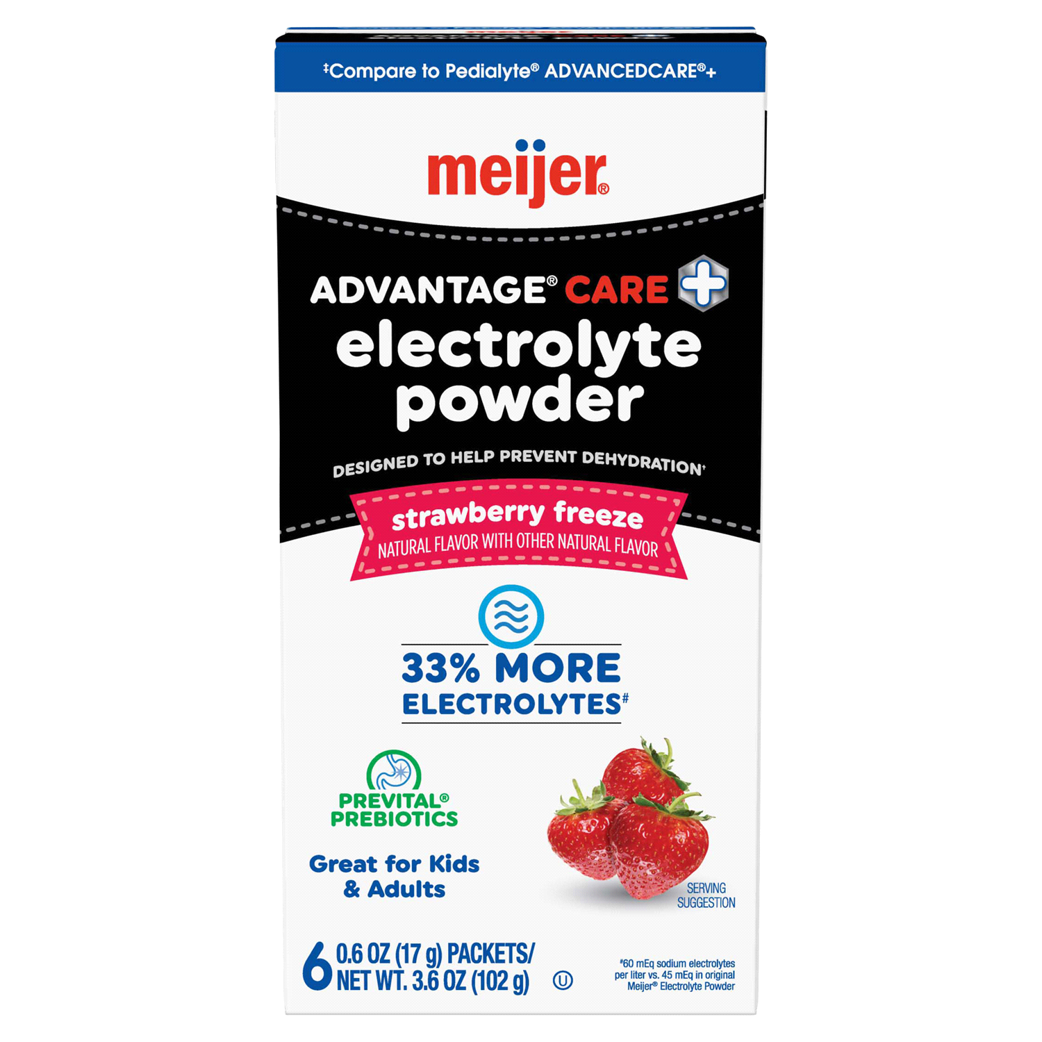 Meijer PED Advantage Care Plus Electrolyte Powder, 33% More Electrolytes, Prevital Prebiot cs, Strawberry Freeze, Electrolyte Drink Powder Sticks