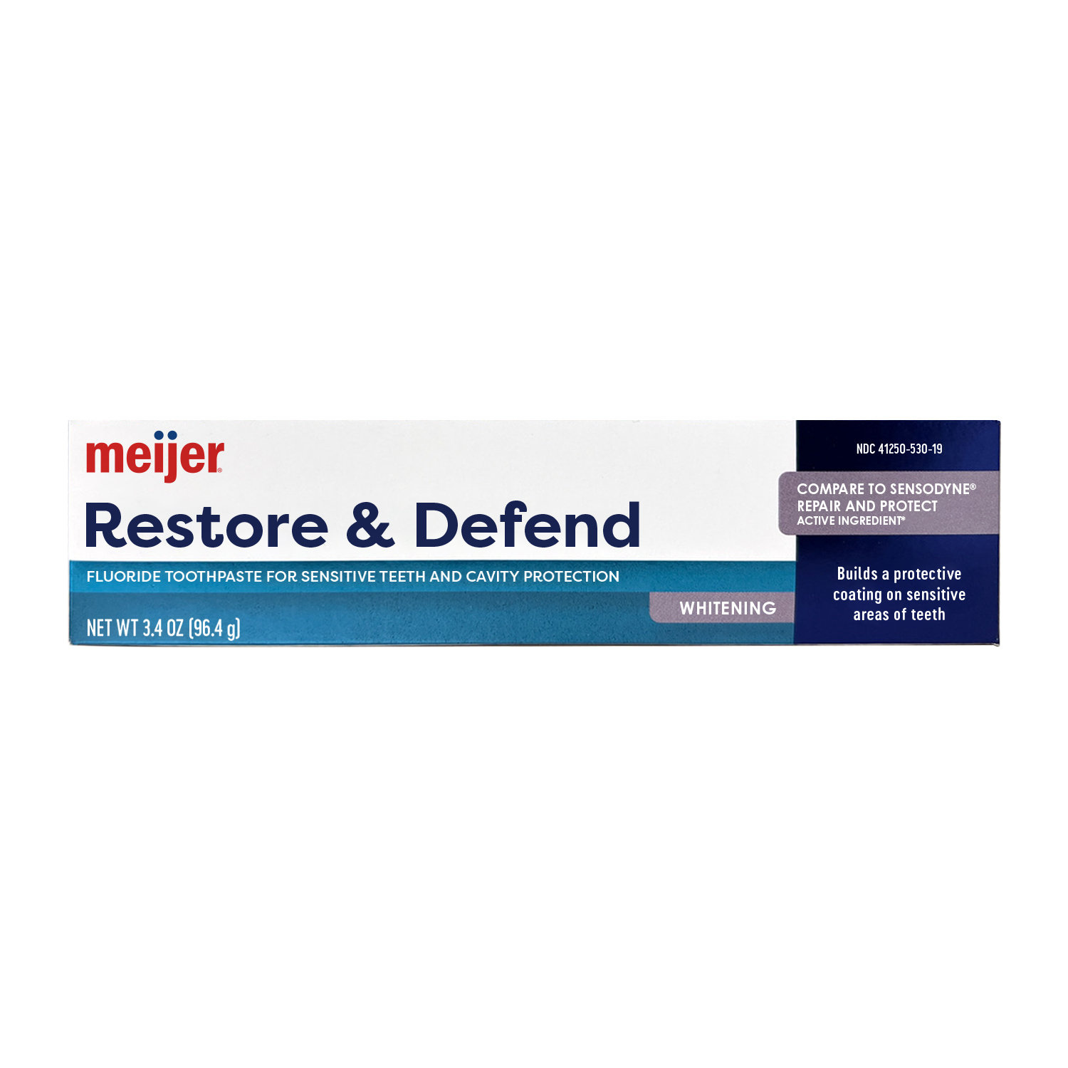 Compared to Sensodyne Repair & Protect Whitening Toothpaste, Meijer Restore & Defend Toothpaste is formulated for sensitive teeth and cavity protection while keeping teeth white. Brushing twice a day …