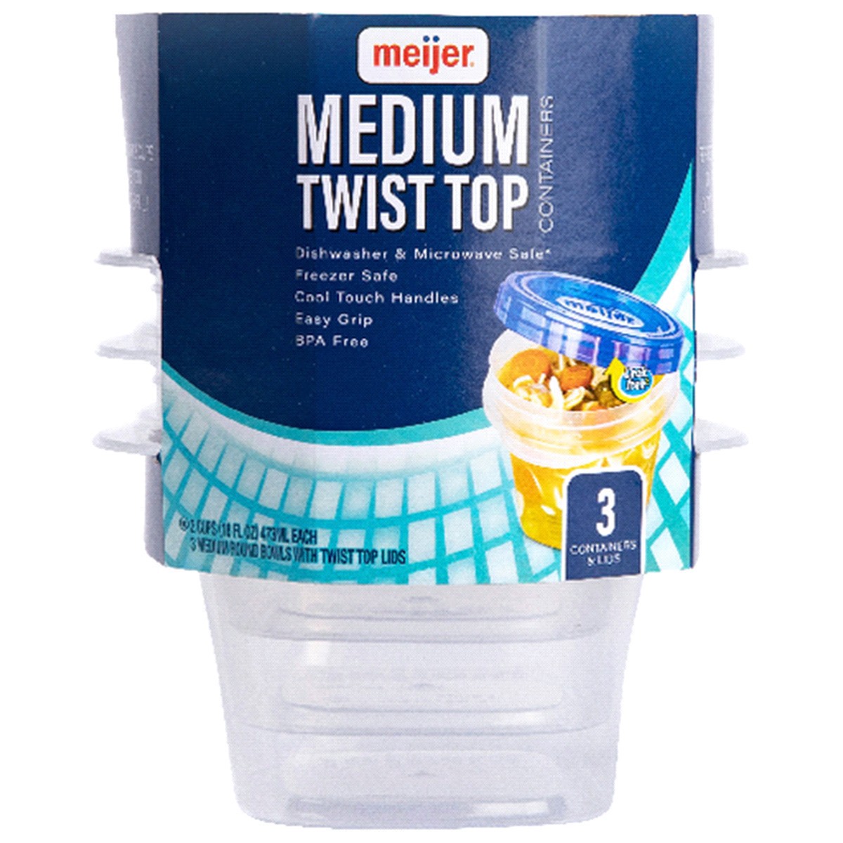 slide 1 of 1, Meijer Storage Container, Twist Top, 3 ct; 16 oz