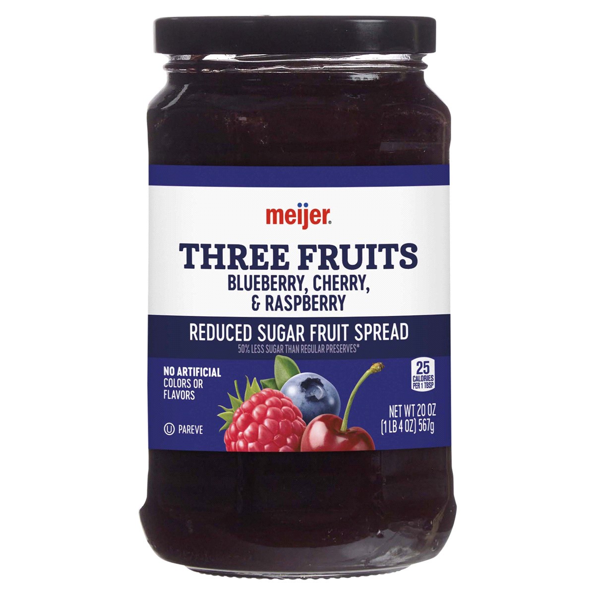 Try our Meijer brand three fruits preserves, which has 40% less sugar and 40% fewer calories than regular preserves!