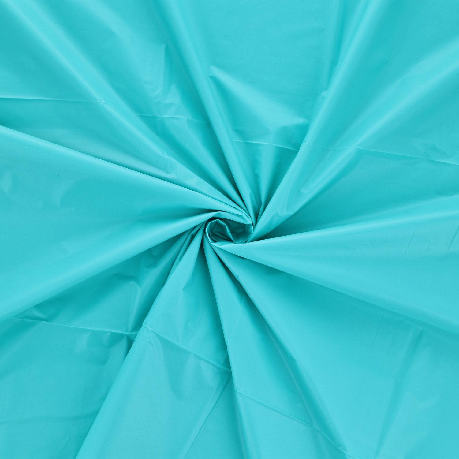 This turquoise plastic table cover is a party essential. It will help protect your table from spills and messes while adding a clean, festive look to your setup.