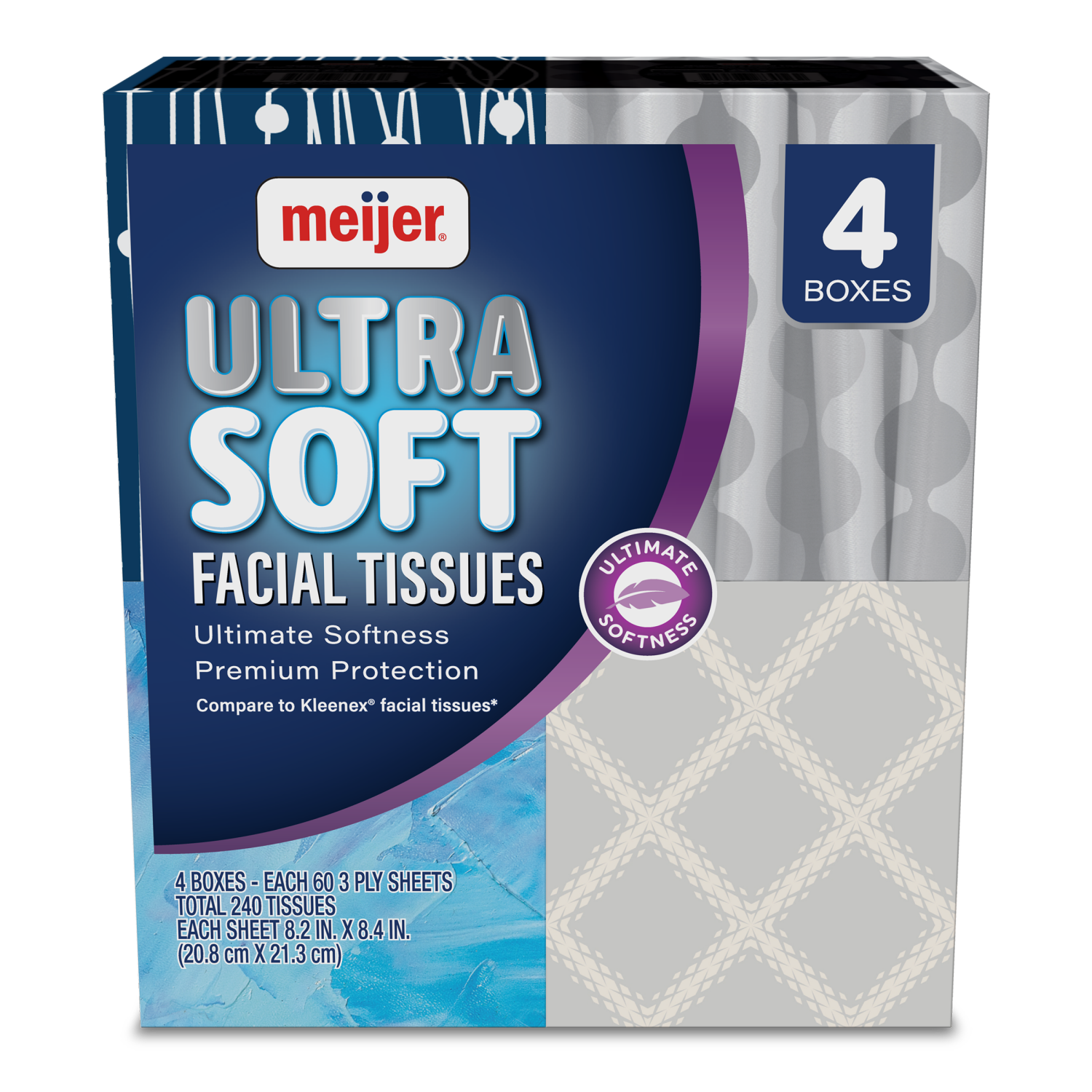 Our premium, 3-ply facial tissue is ultra soft and gentle to the touch, while strong and absorbent enough to tackle colds, flu, and allergies. This tissue is bright white, hypoallergenic and unscented…
