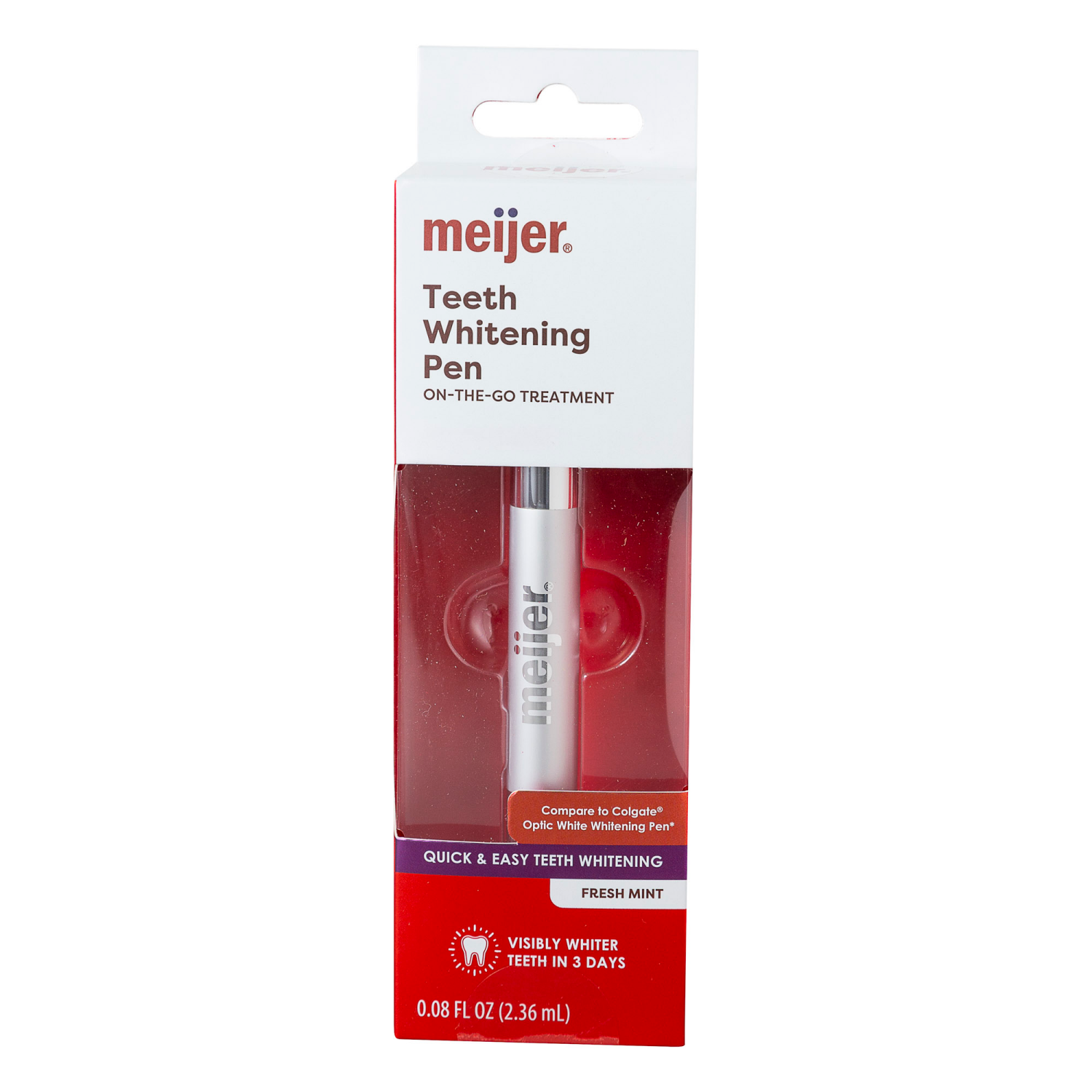 Meijer Whitening Gel Pen with hydrogen peroxide will whiten your teeth in less than 10 minutes per day! Convenient and easy to use, the Meijer Whitening Pen is also perfect for traveling and on-the-go…