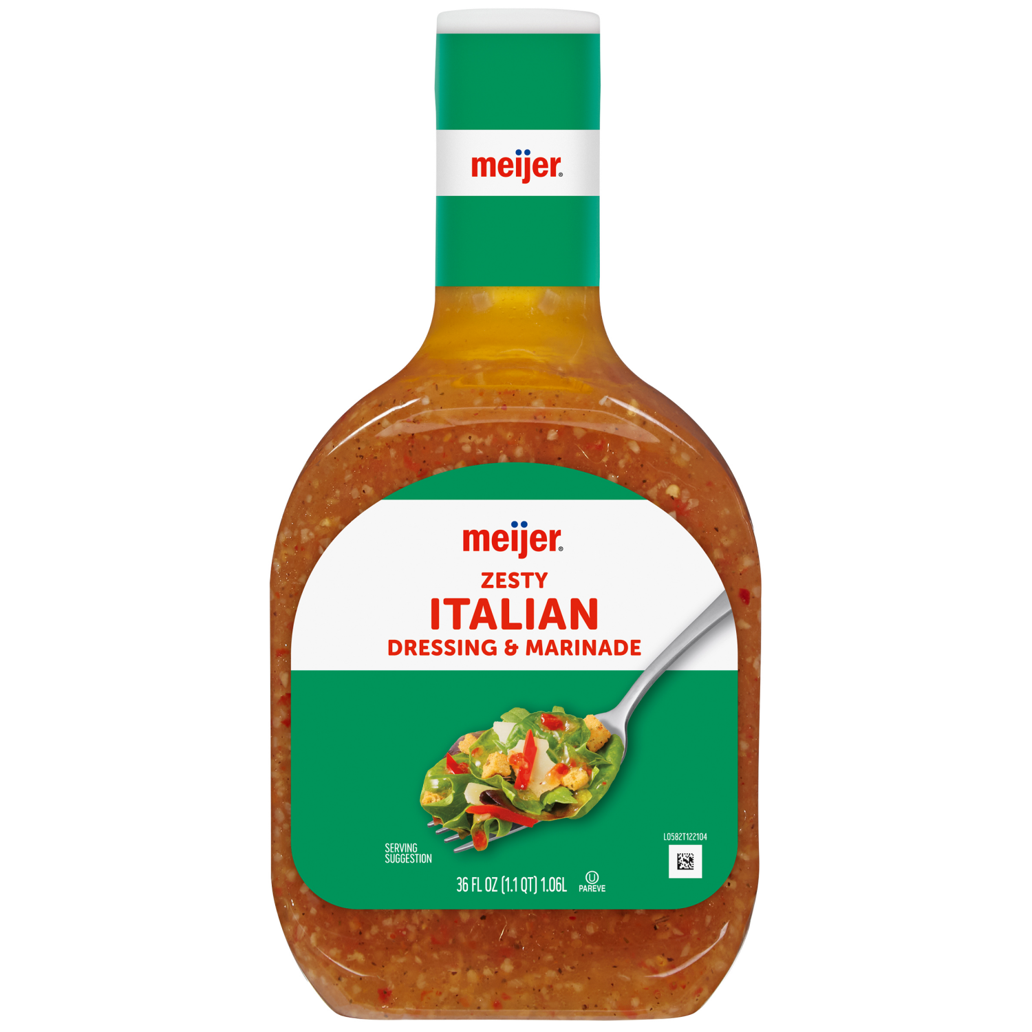 Enjoy bursts of bold flavor with every bite of Meijer Zesty Italian Dressing. Whether added to an Italian salad, used as a chicken marinade or base of a pasta salad, this classic dressing is an easy w…