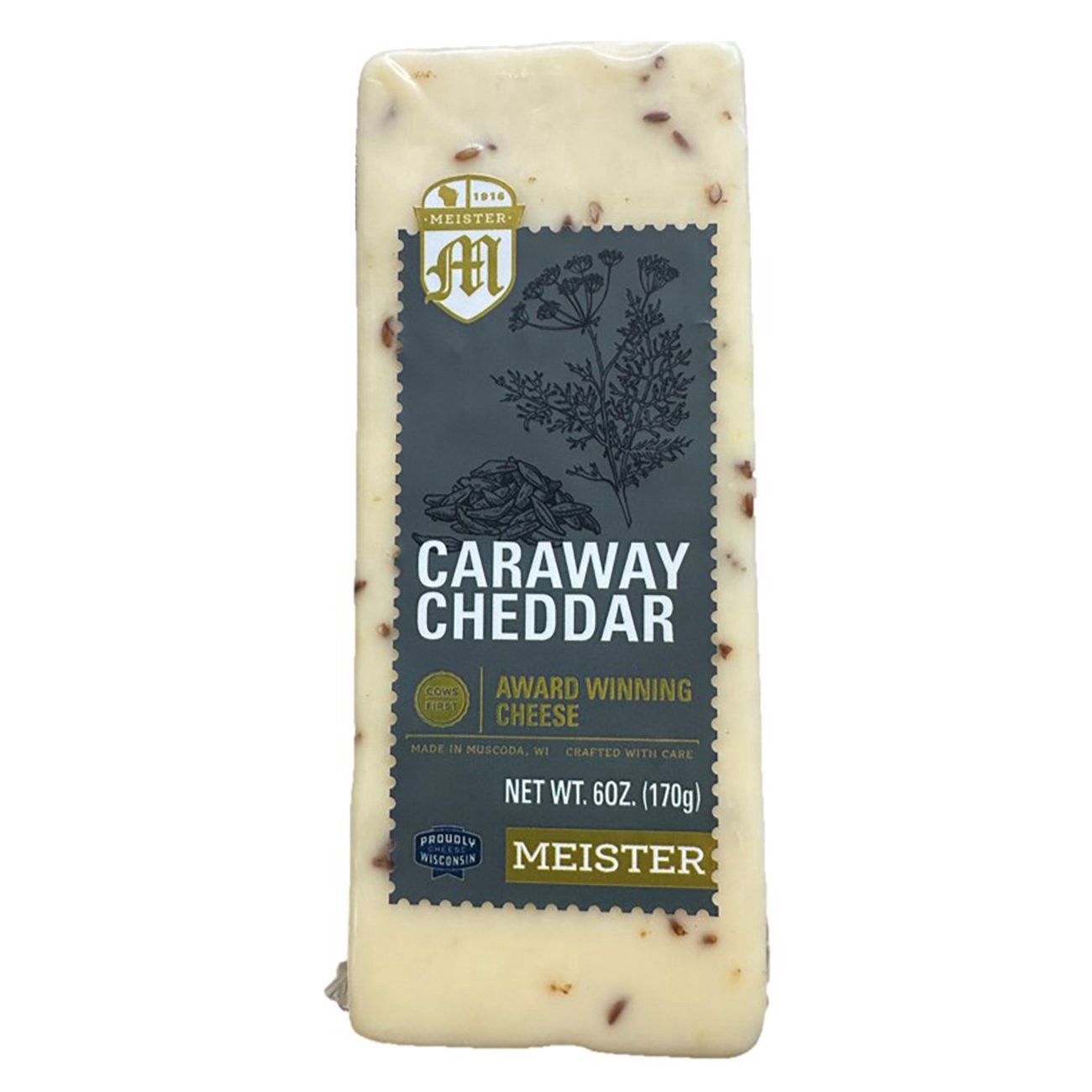 Indulge in the distinctive and aromatic flavor of Meister Caraway White Cheddar Cheese, where the sharpness of aged white cheddar is beautifully enhanced by the warm, slightly nutty notes of caraway s…