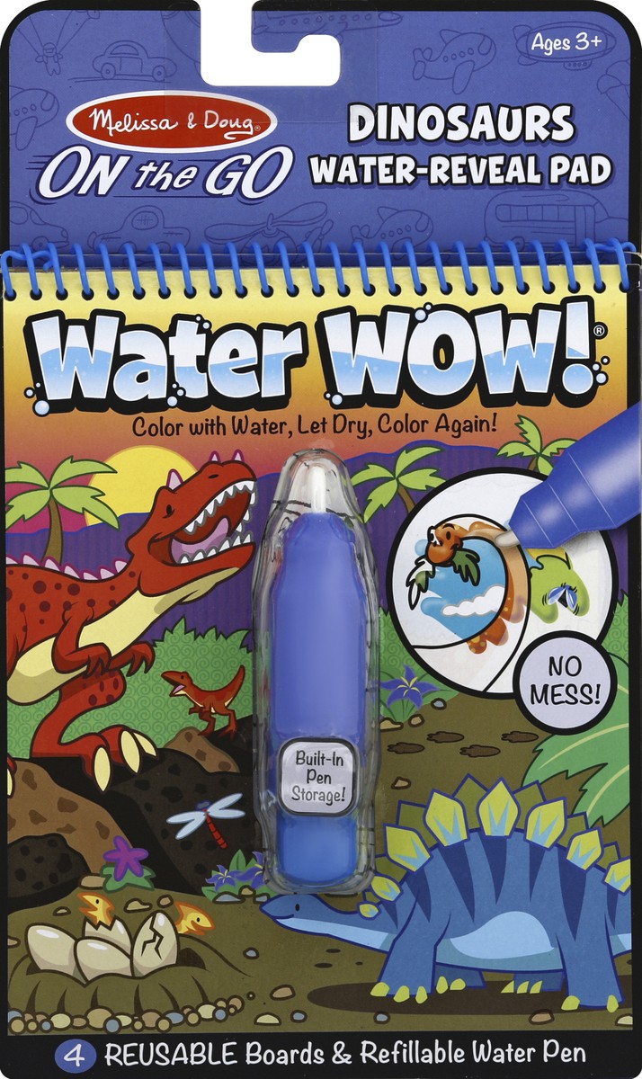 4 reusable boards & refillable water pen. 4 reusable dinosaur-themed activity boards! Ages 3+. Built-in pen storage! No mess! Melissa & Doug products meet or exceed all US toy testing standards and pa…
