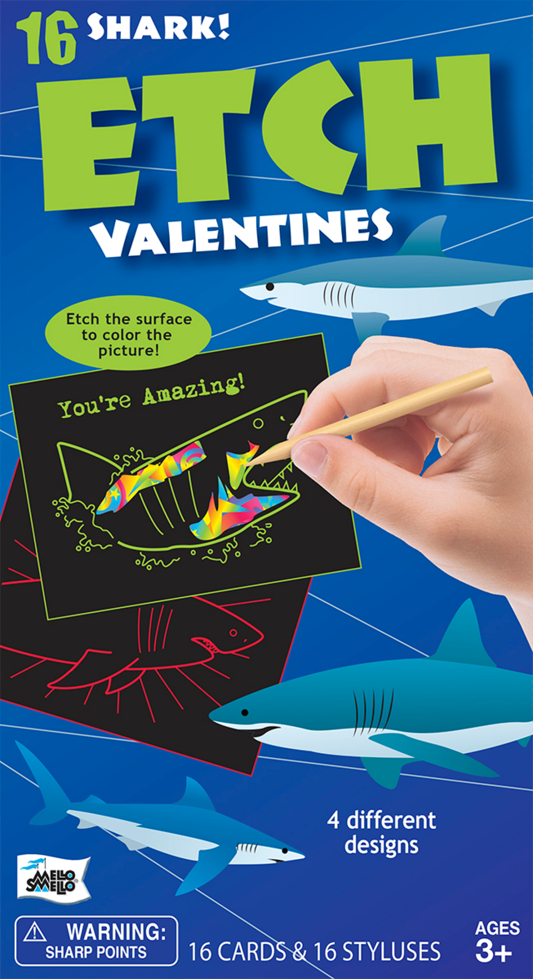 slide 1 of 1, Valentine Shark Etch Card Kit, 16 ct