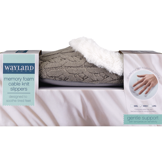 slide 1 of 1, Memory Foam Slipper Cable Knit, 1 ct