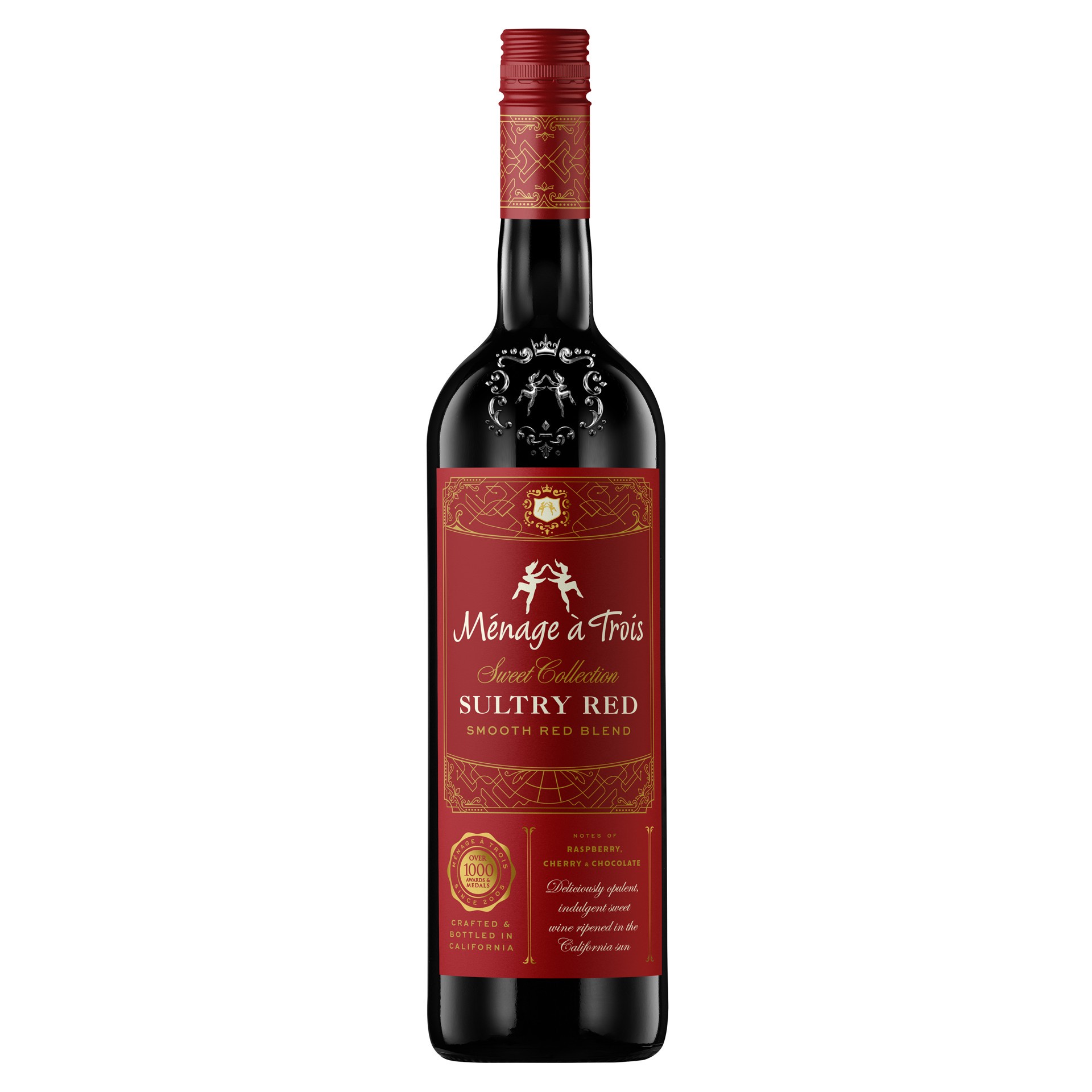 Nothing seduces the palate quite like Ménage à Trois Sultry Red Blend. Crafted from grapes ripened in the California sun, this silky-smooth red blend reveals layers of alluring raspberry and rich cher…