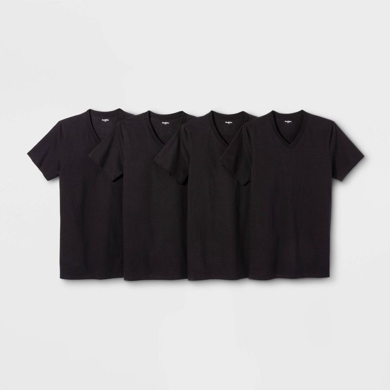 Upgrade your everyday style with this 4-Pack of Black V-Neck T-Shirts from Goodfellow & Co™. This pack of solid black T-shirts makes a versatile choice for any day. Made from 100% cotton for breathabl…