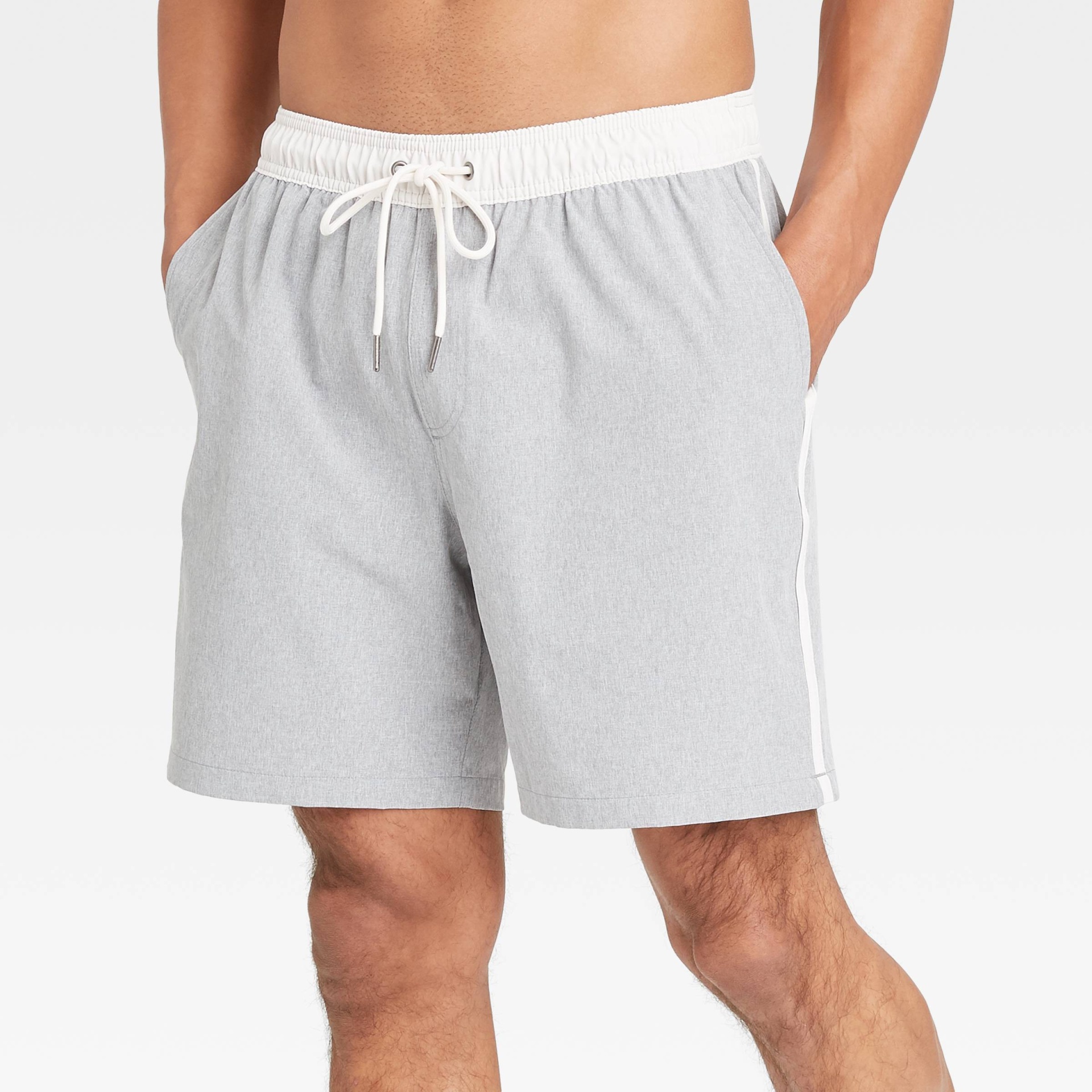 Bring comfort and style to long days in and around the water with the 7-Inch Gray Swim Trunks from Goodfellow & Co. Made with added spandex and mesh liner for breathable comfort, these men's swim trun…