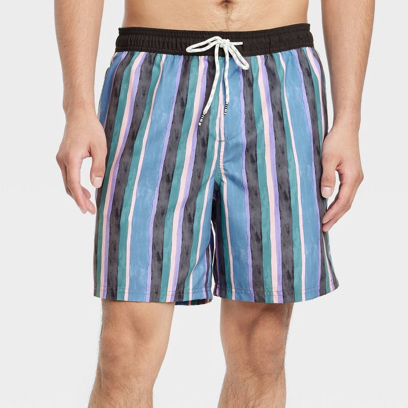 Men's 7" Vertical Striped Swim Trunks - Original Use™ Blue/Black/Green/Pink L