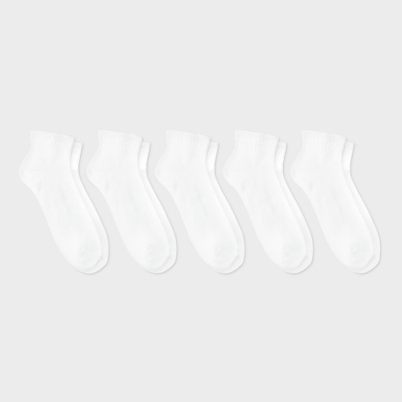 Men's Ankle Socks 5pk - Dealworthy™ White 6-12: Cushioned Sole, Midweight Knit,